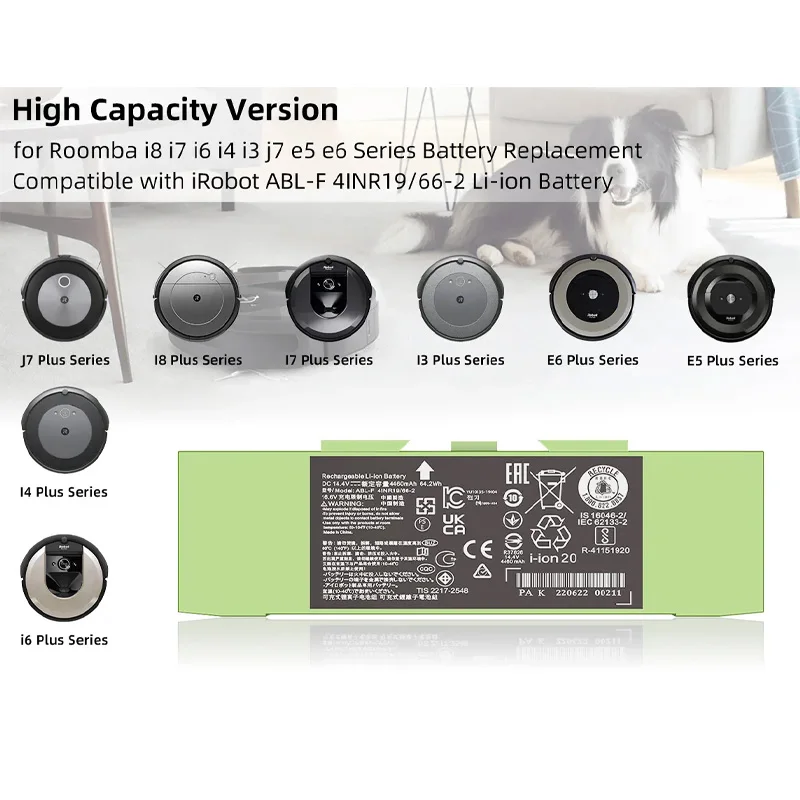 Comprar Batería ABL-F 14,4 V 4460 mAh/62,4 Wh para iRobot Roomba e y i Series, i7 i7+ j7 j7+ 7150 7550 e5 e6 e5150 e6198 i3 3150 i3+ 3550