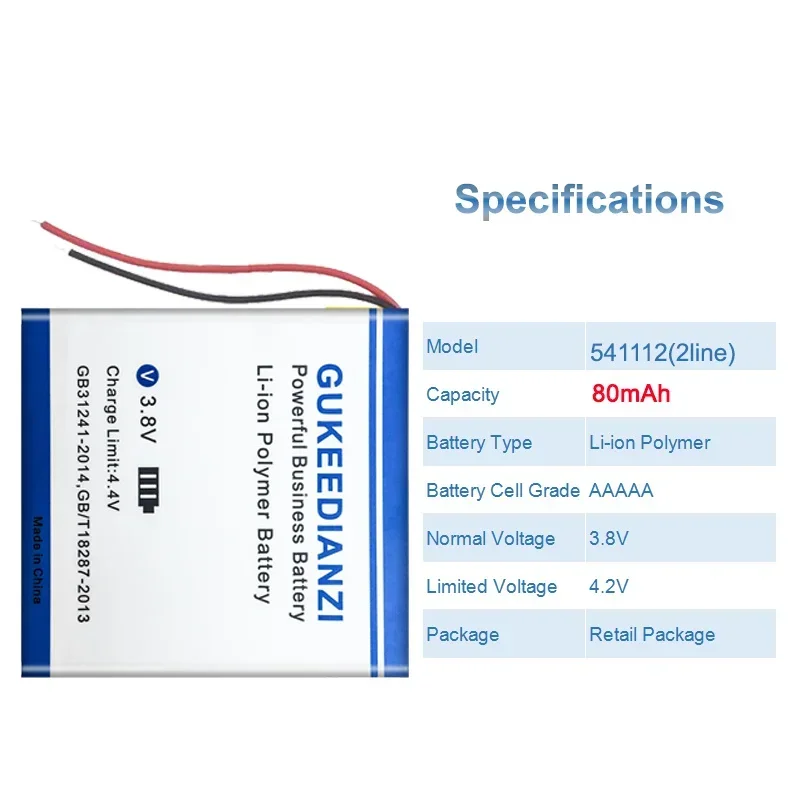 ※Modelo de batería: 541112 (2 líneas)※Capacidad: 80mAh※Ajuste: Para auriculares xiaomi redmi airdots