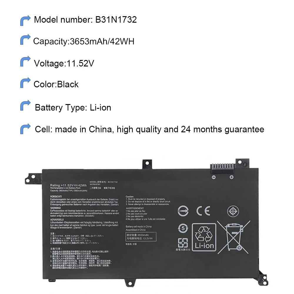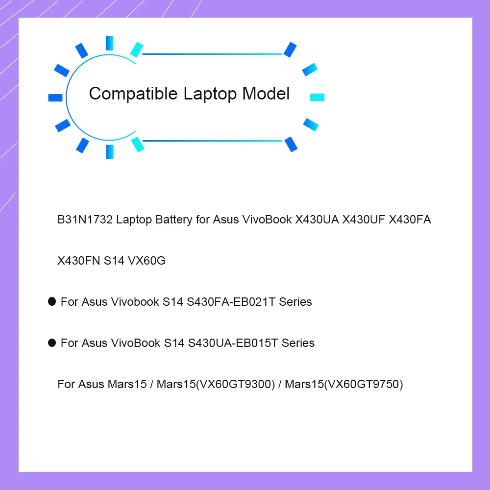 Comprar Batería B31N1732 para portátil Asus VivoBook X430UA, X430UF, X430UN, X430FA, X430FN, X571G, X571LH, X571GT, S14, S430FA, S430FN, S430UA, R430FN
