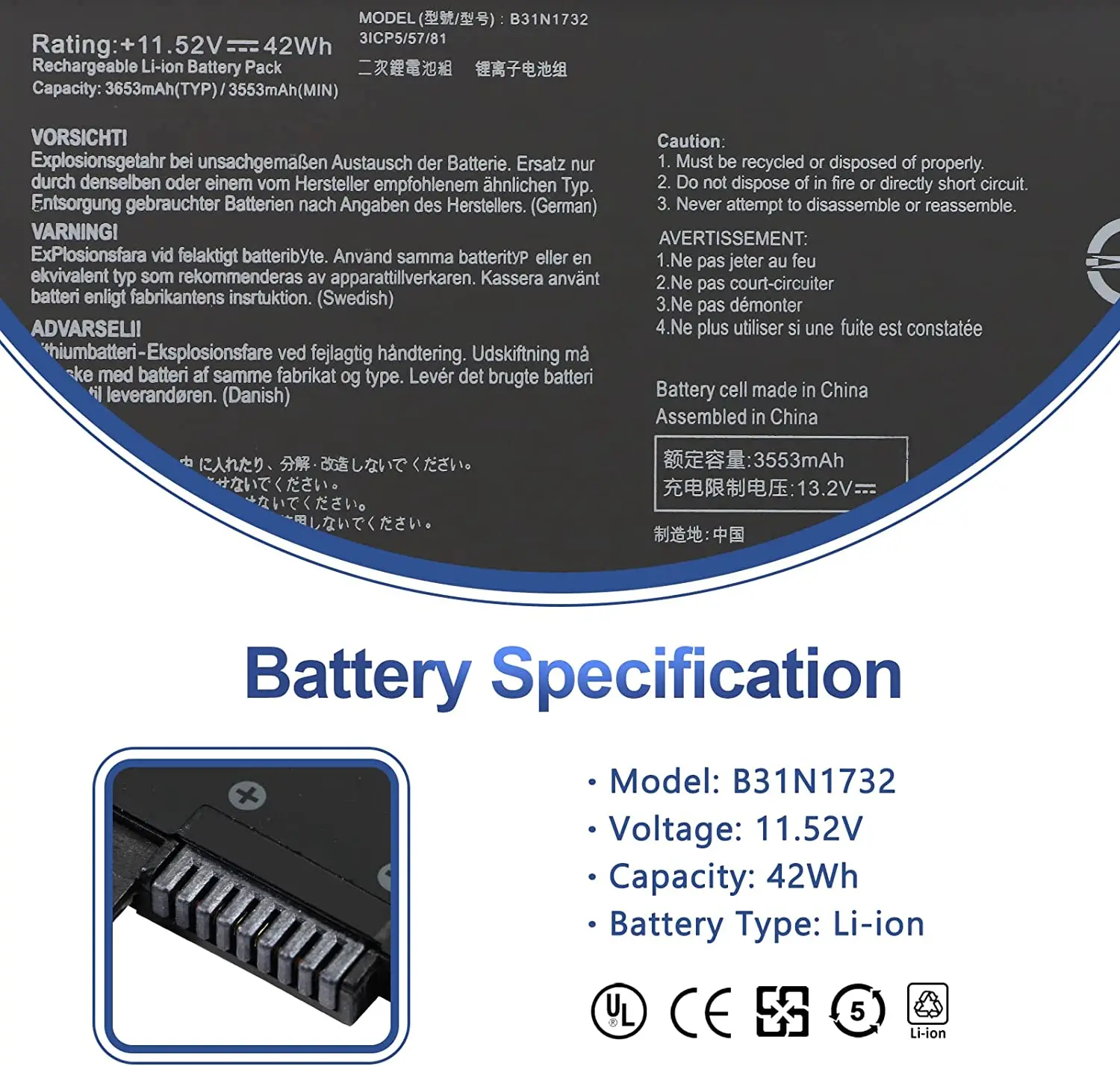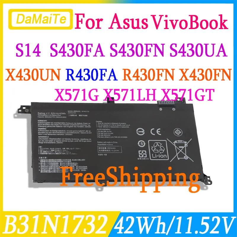 Comprar Batería B31N1732 para portátil Asus VivoBook X430UA, X430UF, X430UN, X430FA, X430FN, X571G, X571LH, X571GT, S14, S430FA, S430FN, S430UA, R430FN