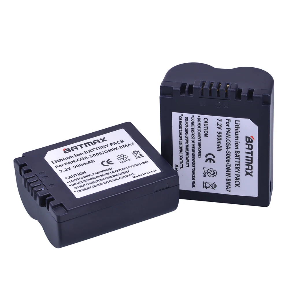 Batmax 900mAh CGR-S006E CGR S006E S006 Batería de cámara + cargador USB dual LED con puerto tipo C para cámara Panasonic DMC-FZ7 FZ30 FZ50 FZ28 FZ18 TZ8 FZ8