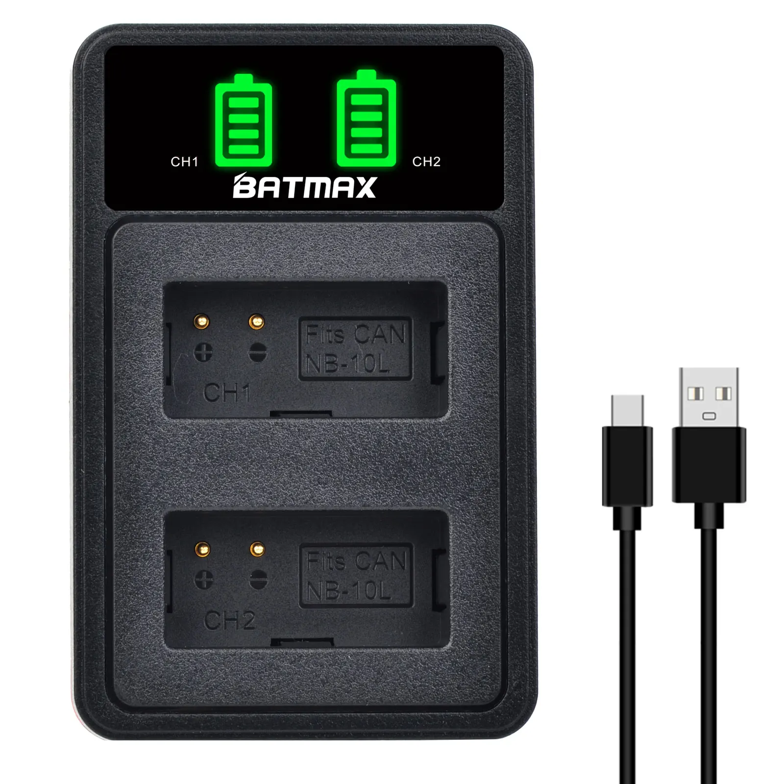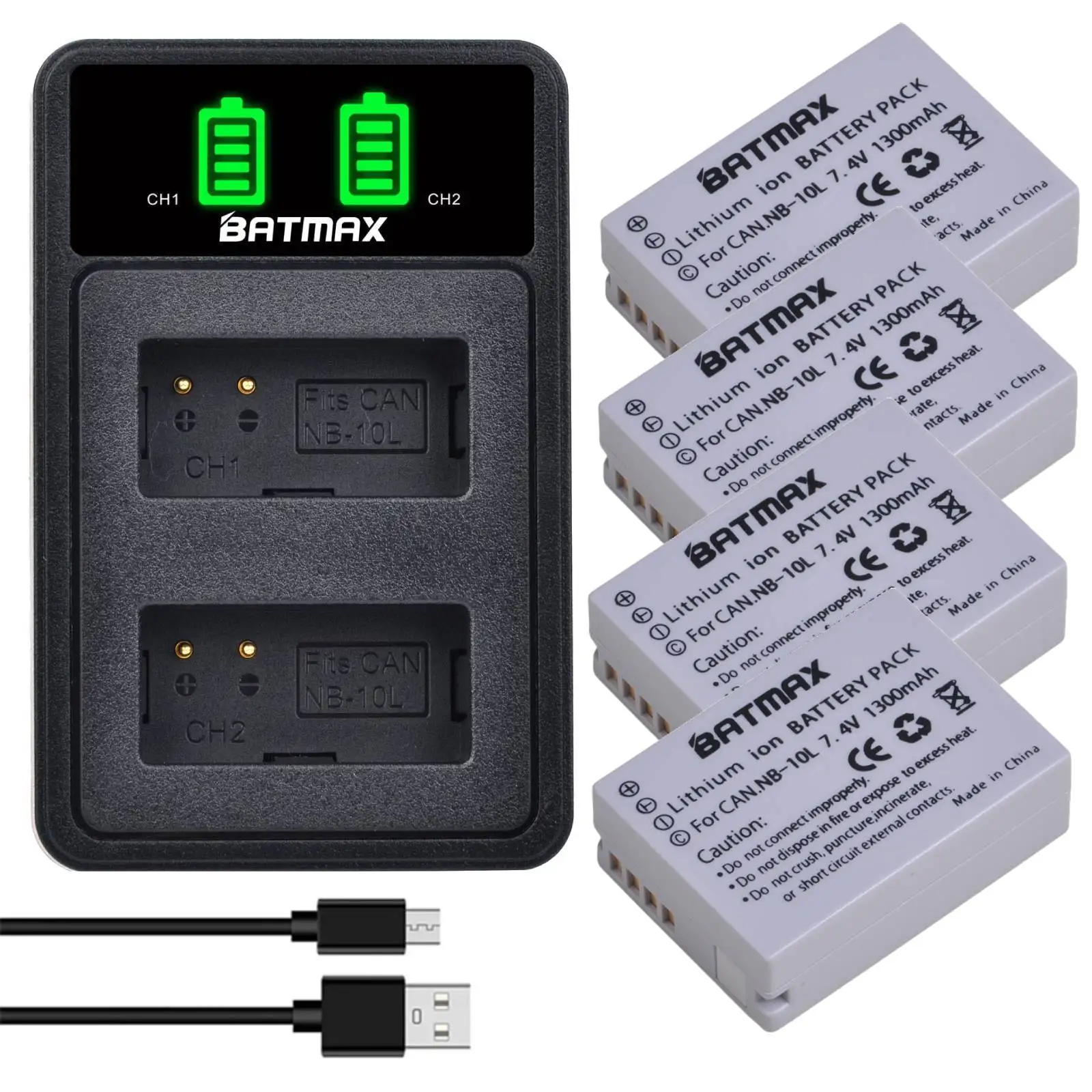 Batmax NB-10L NB10L Camera Battery+New LED Dual Charger with Type C Port for Canon G1X G15 G16 SX40HS SX50HS SX60HS SX40 SX50 SX60 HS