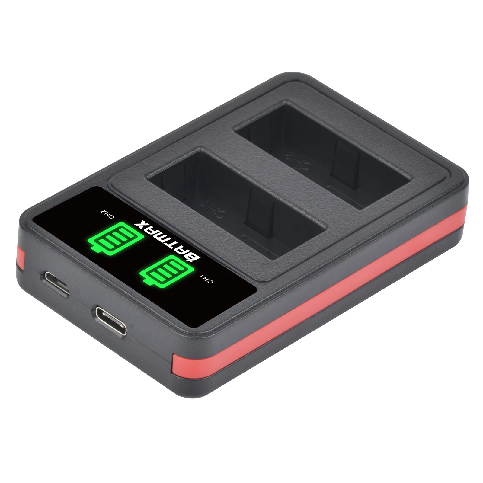 2.Charge two batteries simultaneously and independently.