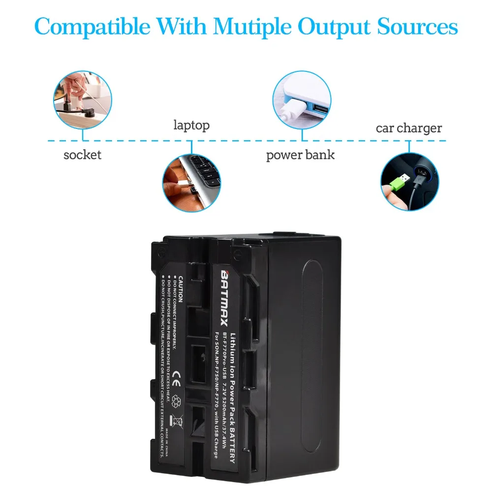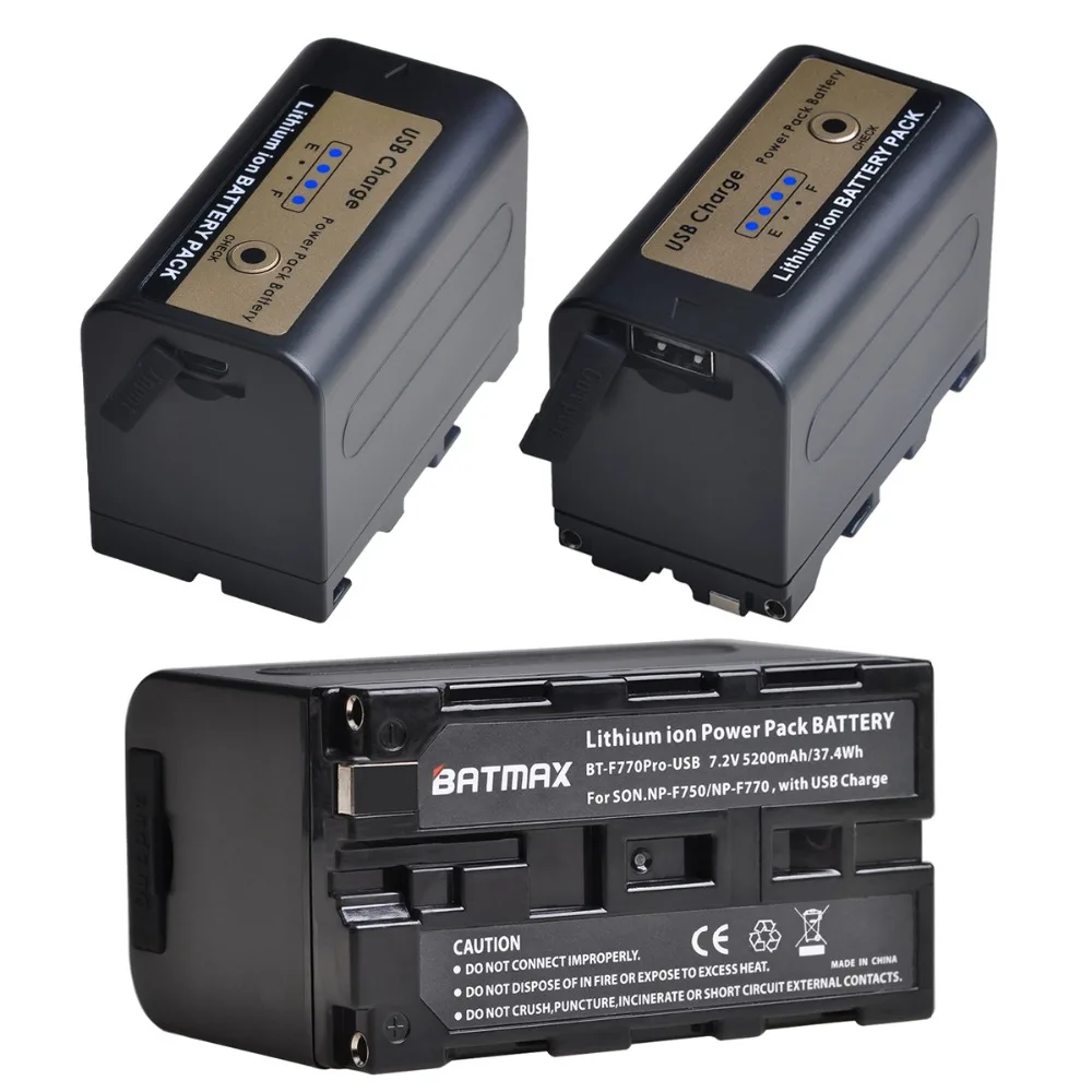 Batmax 5200mAh NP-F770 NP-F750 NP F770 np f750 NPF770 750 con salida de carga USB para Sony NP F970 F960 F550 F570 QM91D CCD-RV100 TRU47E