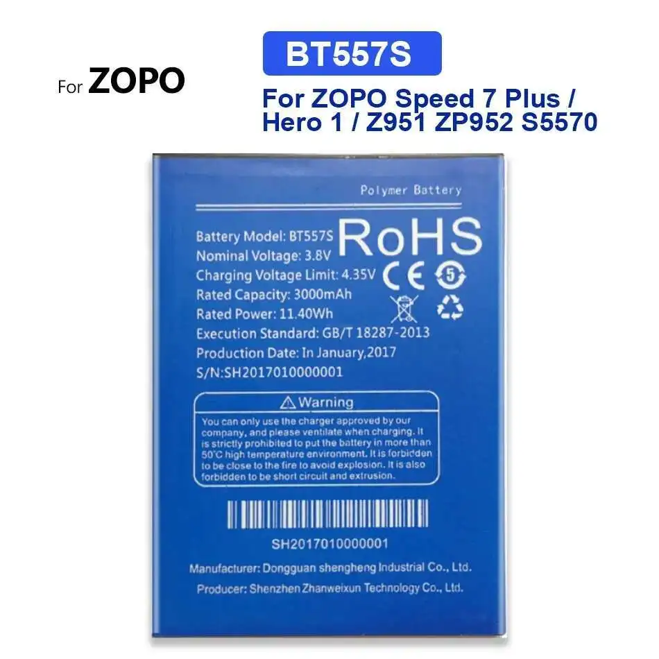 Comprar Batería BT78S BT78T BT557S BT55S BT97S BT55T 2000mAh-3000mAh para Zopo Speed 7 Plus 9520 998 370 980 999 998 C2 C3 3X