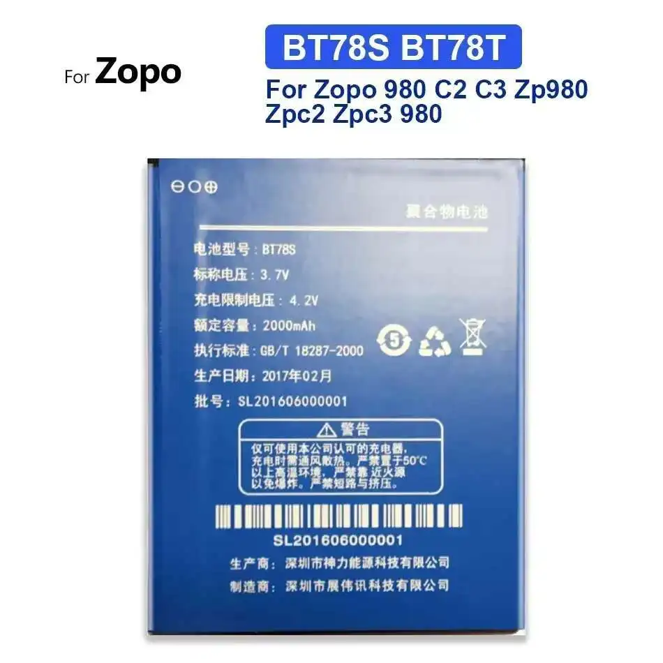 Comprar Batería BT78S BT78T BT557S BT55S BT97S BT55T 2000mAh-3000mAh para Zopo Speed 7 Plus 9520 998 370 980 999 998 C2 C3 3X