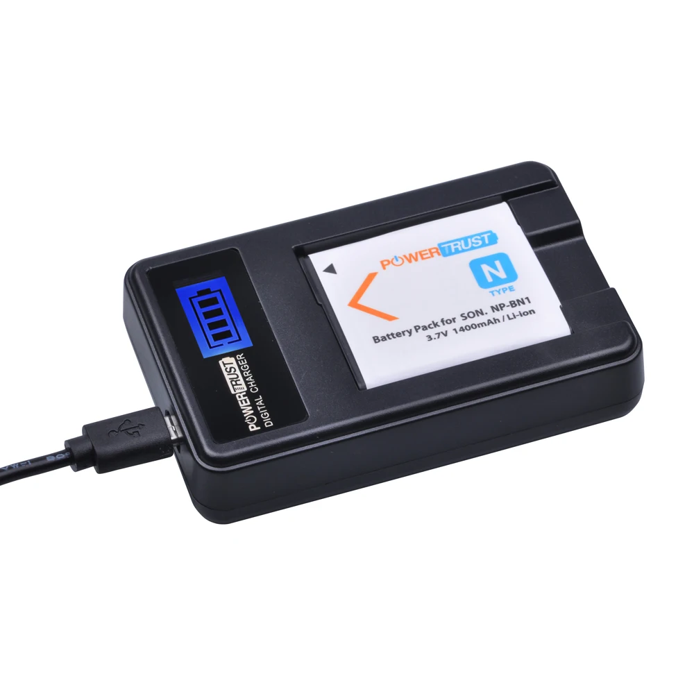 PowerTrust NP BN1 batería akku + LCD cargador USB para Sony DSC TX9 T99 WX5 TX7 TX5 W390 W380 W350 W320 W360 QX100 W370 W730 W150