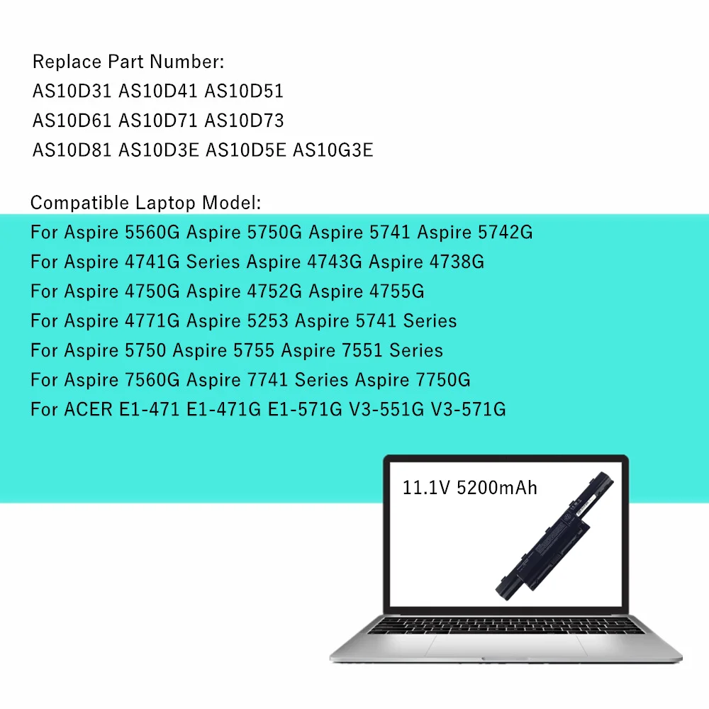Comprar Batería del ordenador portátil para Acer Aspire 4750G 4752G 4755G AS10D61 4771G 5253 5750 AS10D71 5755 7551 7560G AS10D73 7741 7750G Series