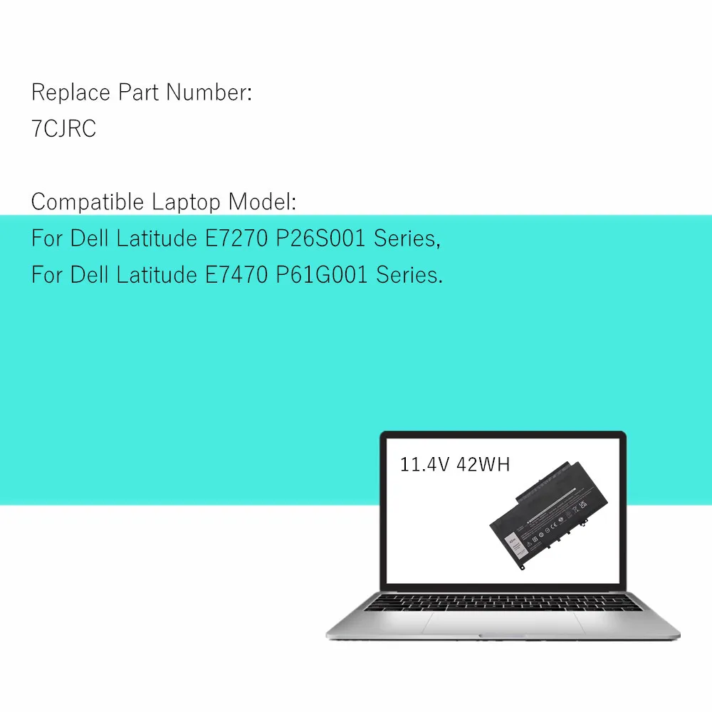 Comprar Batería del ordenador portátil para Dell Latitude E7470 E7270 7CJRC 21X15 021X15 J60J5 F1KTM 11,4 V 42Wh