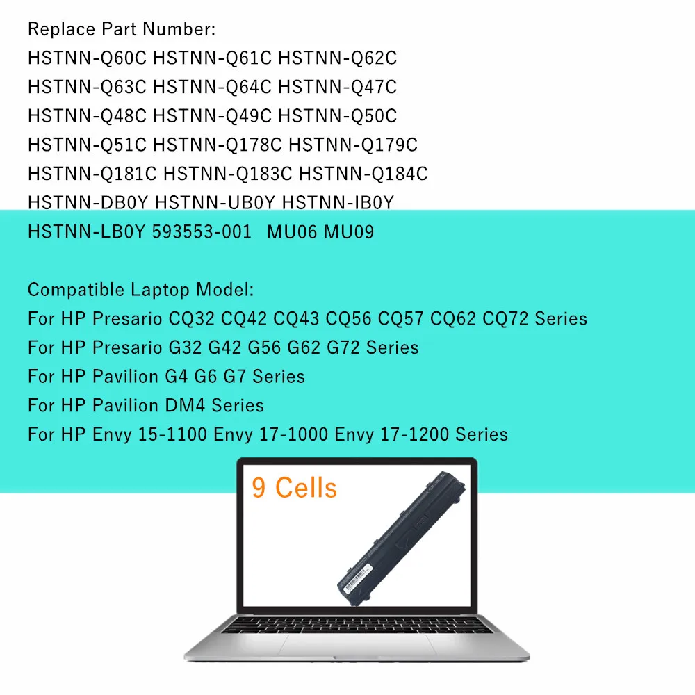 Comprar Batería del ordenador portátil para HP/Compaq HSTNN-Q60C HSTNN-Q61C HSTNN-Q62C HSTNN-Q63C HSTNN-Q64C HSTNN-YB0X MU06 MU09