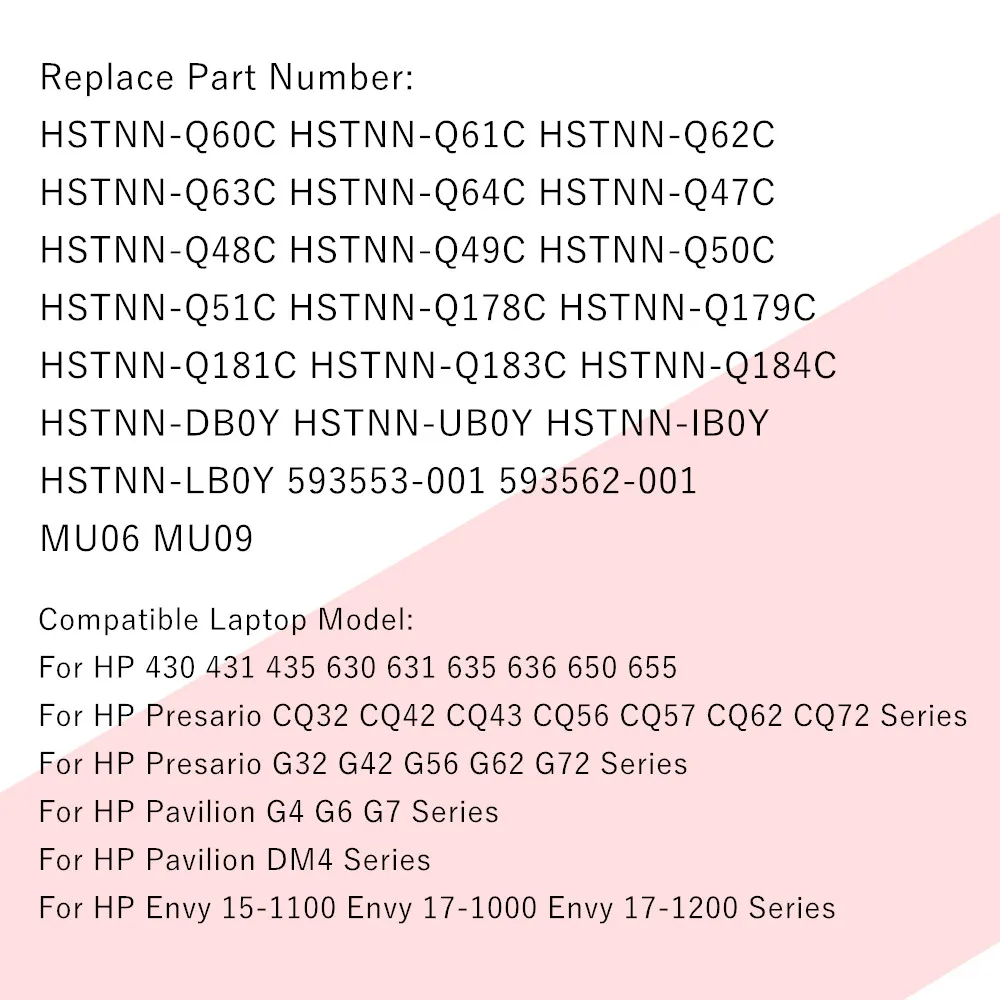 Comprar Batería del ordenador portátil para HP/Compaq Pavilion HSTNN-Q49C HSTNN-Q60C HSTNN-Q61C HSTNN-Q48C HSTNN-Q62C HSTNN-Q63C HSTNN-Q64C HSTNN-Q47C