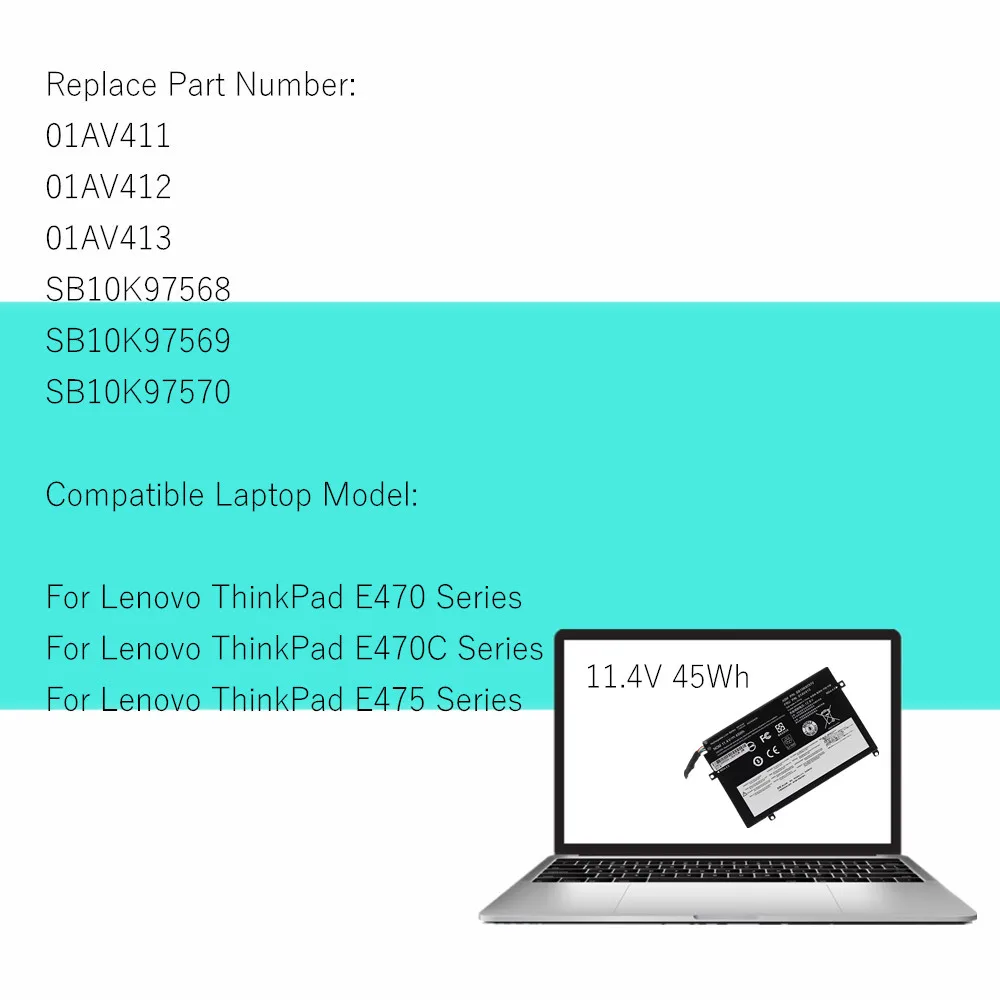Comprar Batería del ordenador portátil para Lenovo ThinkPad E470 E470C E475 01AV411 01AV412 01AV413 SB10K97568 SB10K97569 SB10K97570