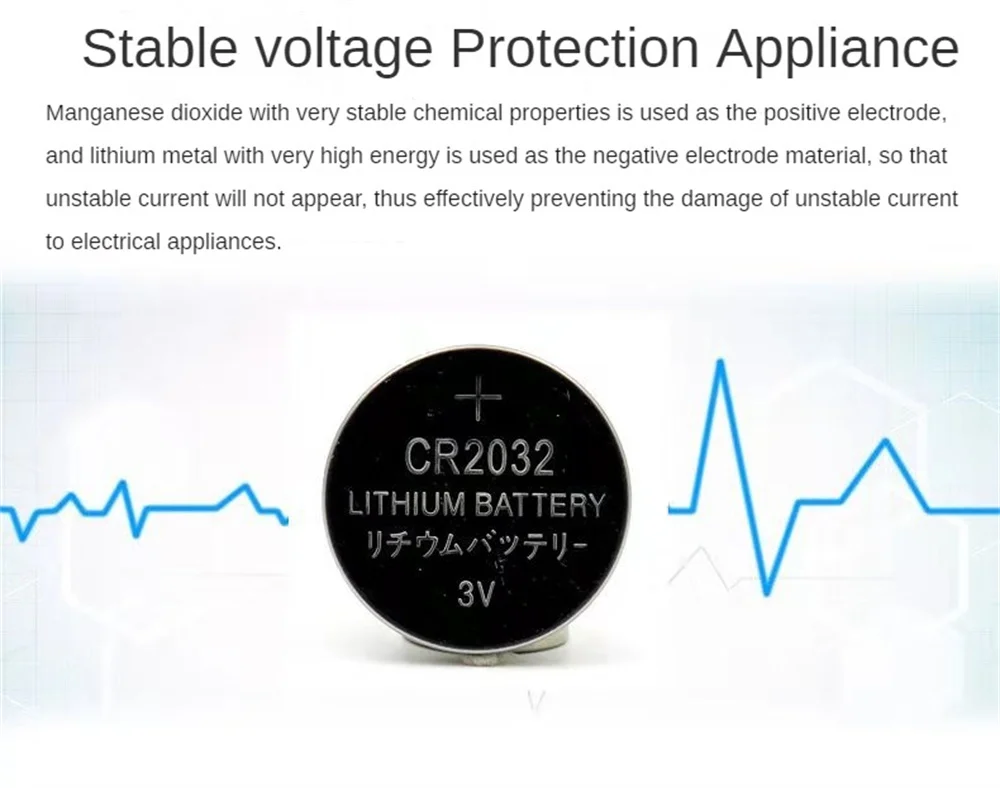 Batería de Dióxido de Litio-Manganeso, Pila de Botón Cr2032, Fácil de Instalar, Multifuncional, 3V, Duradera, 1 a 10 cm