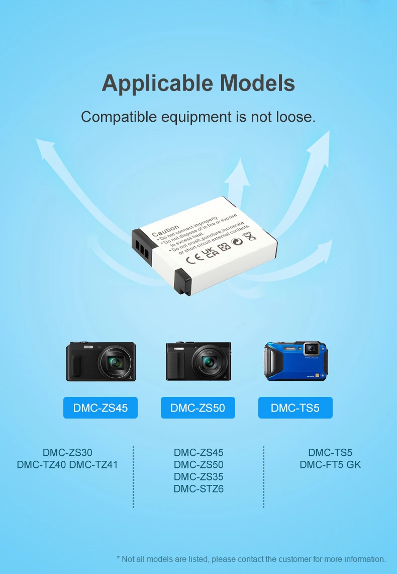 Batería de cámara de 1350mAh y mAh para Panasonic Lumix DMC ZS40 TZ60 ZS45 TZ57 ZS50 TZ70 ZS27 TZ37 TZ41