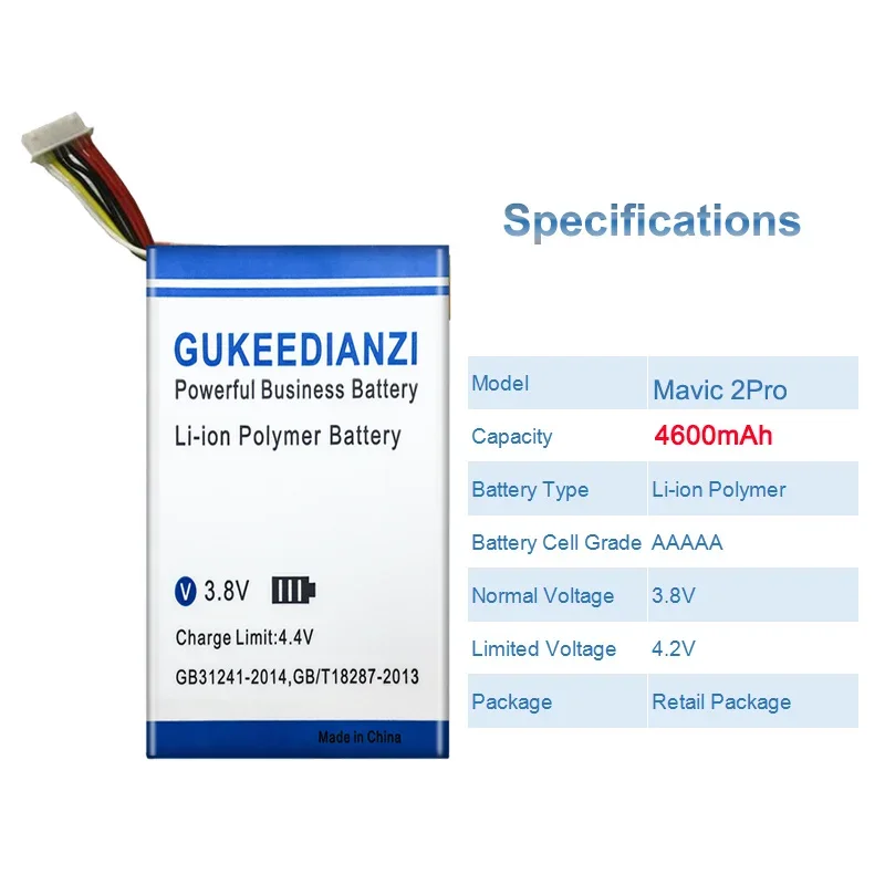 ※Modelo de batería: Mavic 2Pro(623758-1S2P)※Capacidad: 4600mAh※Ajuste: para DJI Mavic 2 Pro, Mavic 2 Zoom, control remoto RC1A