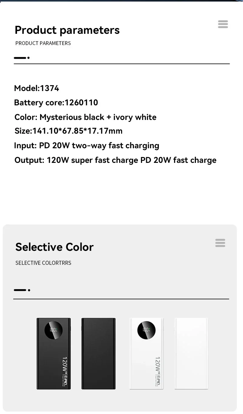 Producto: Banco de energía de carga súper rápida de 120 W con cable de alimentación incorporado