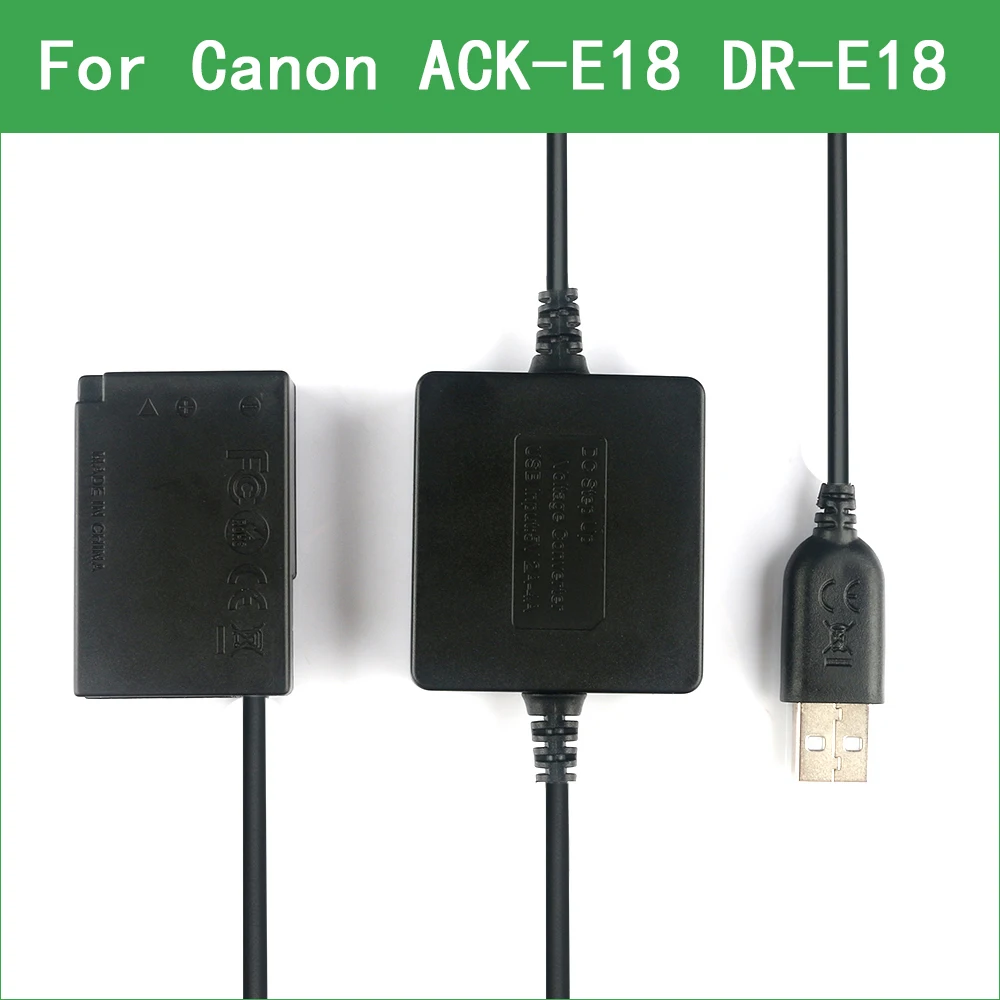 Comprar Batería ficticia de ACK-E18 y Cable USB de Banco de energía CC para Canon EOS 200D II Rebel SL2 SL3 T6i T6s T7i T8i Kiss X8i X9 X9i X10, DR-E18
