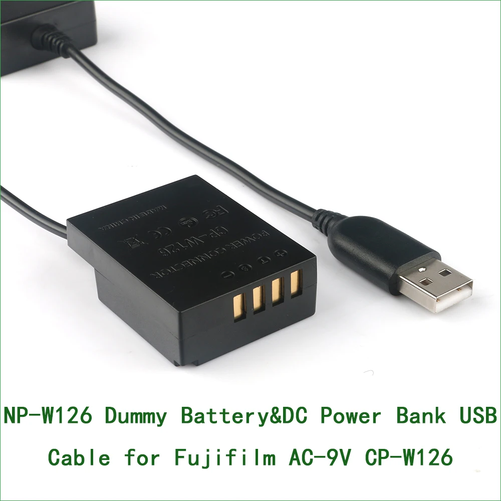 Comprar Batería ficticia NP-W126 W126S y Cable USB de Banco de energía de CC para Fujifilm, X-S10, X-H1, X-M1, X-T1, X-T2, X-T3, X-T10, X-T20