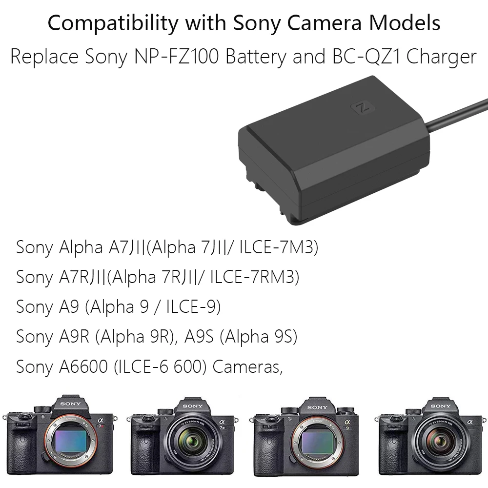 Kit de batería simulada NP-FZ100 para Sony A7 III, A7 IV, A7R III, A7S III, A7R IV, A7R V, A6600, A9 II, A9, A9S, A9R,