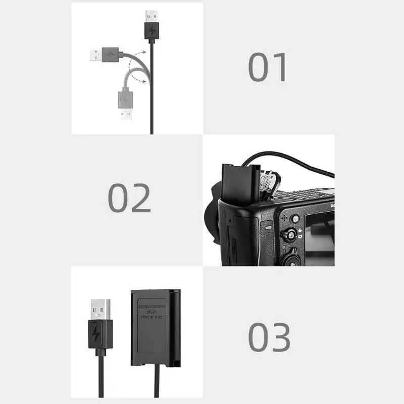 Características:OOTDTYLa batería USB a Dummy proporciona energía continua para cámaras que incluyen modelos como las series ZV1 y RX100M5, lo que garantiza fotografías ininterrumpidas.
