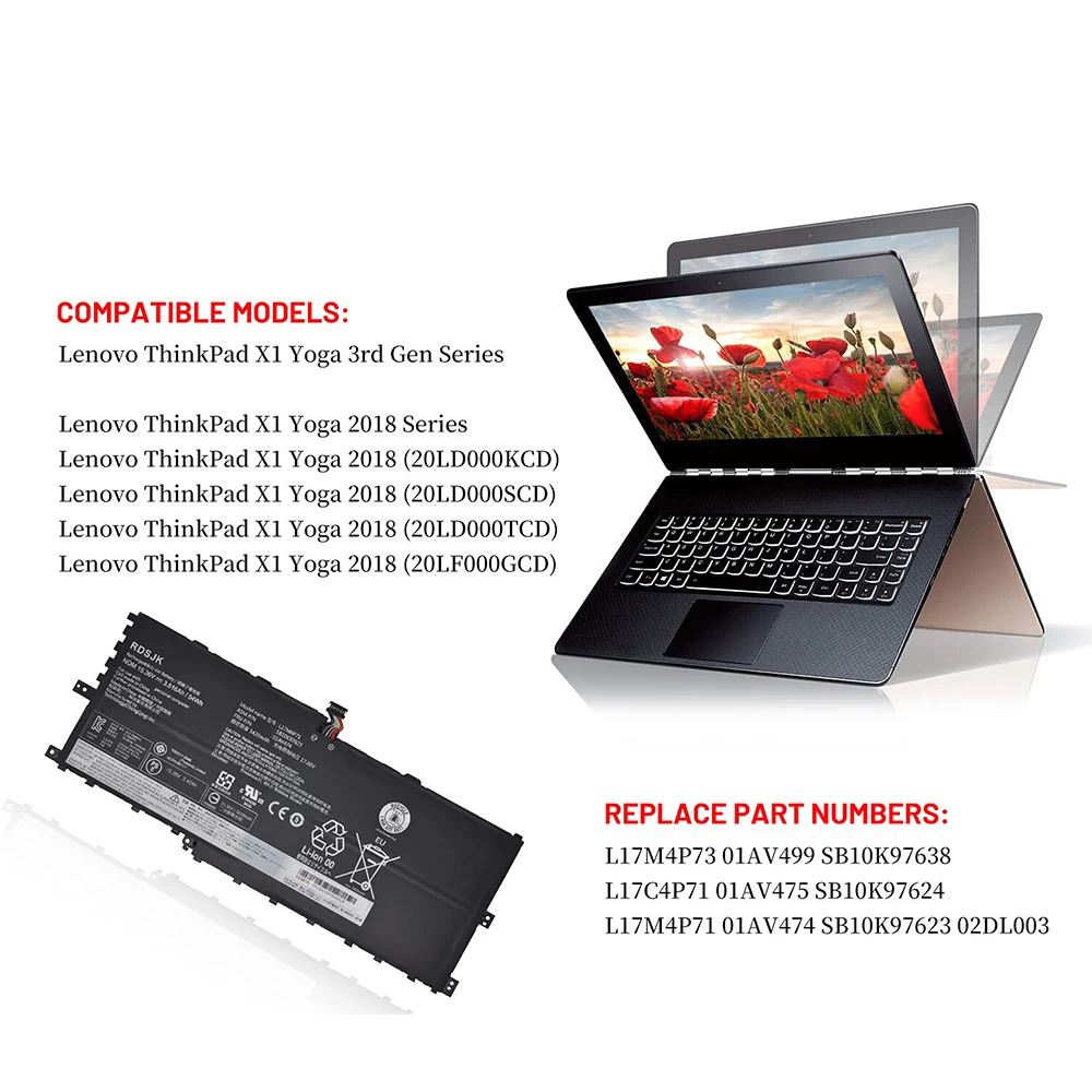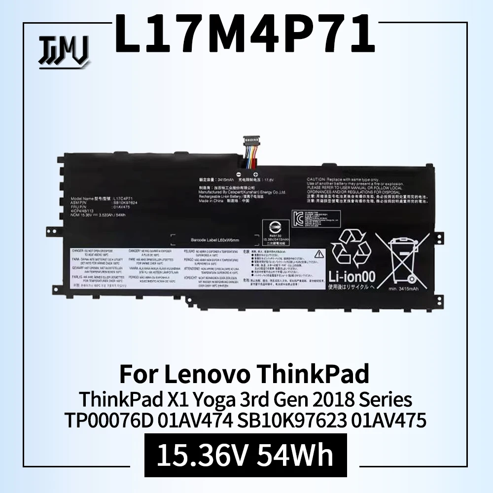 Comprar Batería L17M4P71 L17C4P71 L17M4P73 para portátil Lenovo ThinkPad X1 Yoga 3rd Gen 2018 Series 20LD 20LE 20LF 20LG TP00076D 01AV474