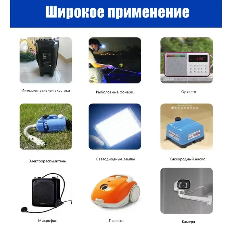 Los paquetes de baterías se utilizan ampliamente en faros, lámparas de minero, linternas, reflectores, altavoces (bocinas), equipos de monitoreo inalámbrico, equipos médicos, instrumentos, señales de tráfico y pequeños electrodomésticos portátiles.