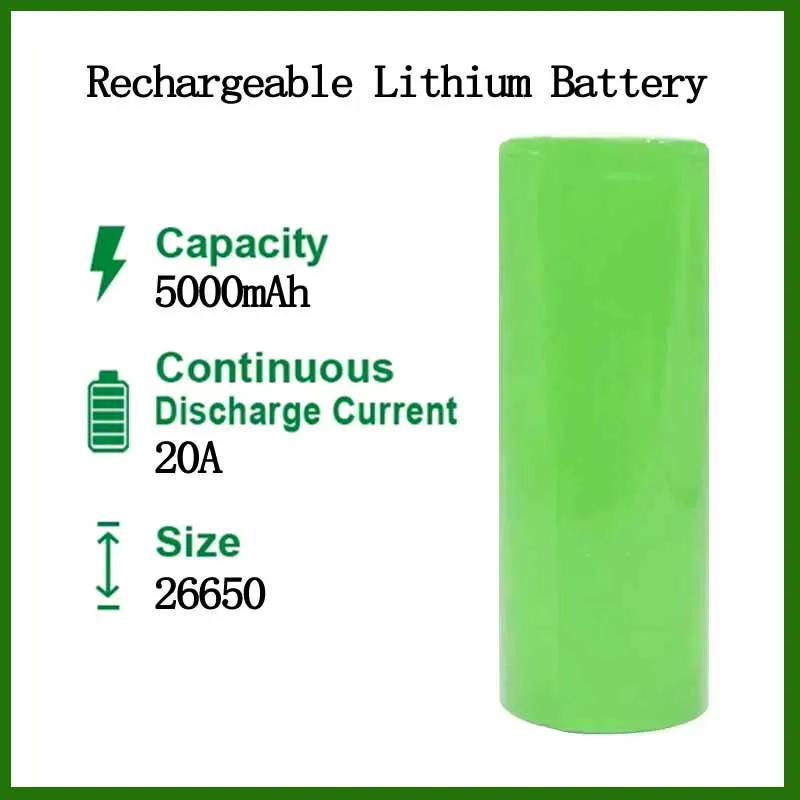 Batería de litio recargable 26650 de alta calidad, 3.7V, 5000mAh, para linterna, banco de energía, vehículo eléctrico, máquina de un solo poste