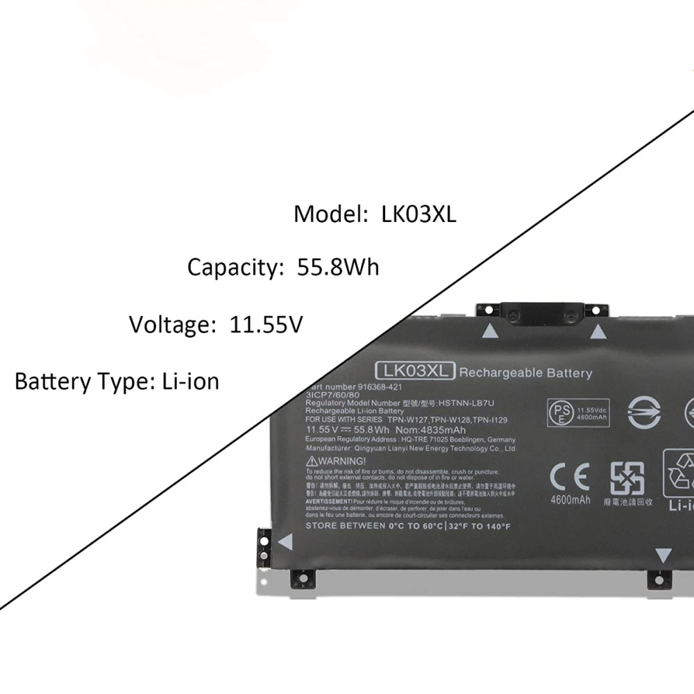 Comprar Batería LK03XL para ordenador portátil HP, para HP HSTNN-UB7I, TPN-W127, W128, Envy 15, X360, 15-bp, 15-cn, TPN-W127, W128, W129, W134, HSTNN-LB7U