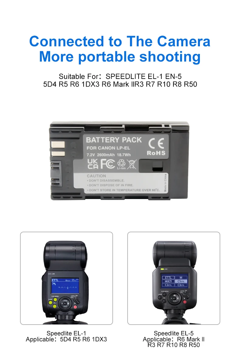 Comprar Batería de LP-EL para Canon, pila recargable de iones de litio, Canon 4307C002, Flash Speedlite EL‑ 1 EL1