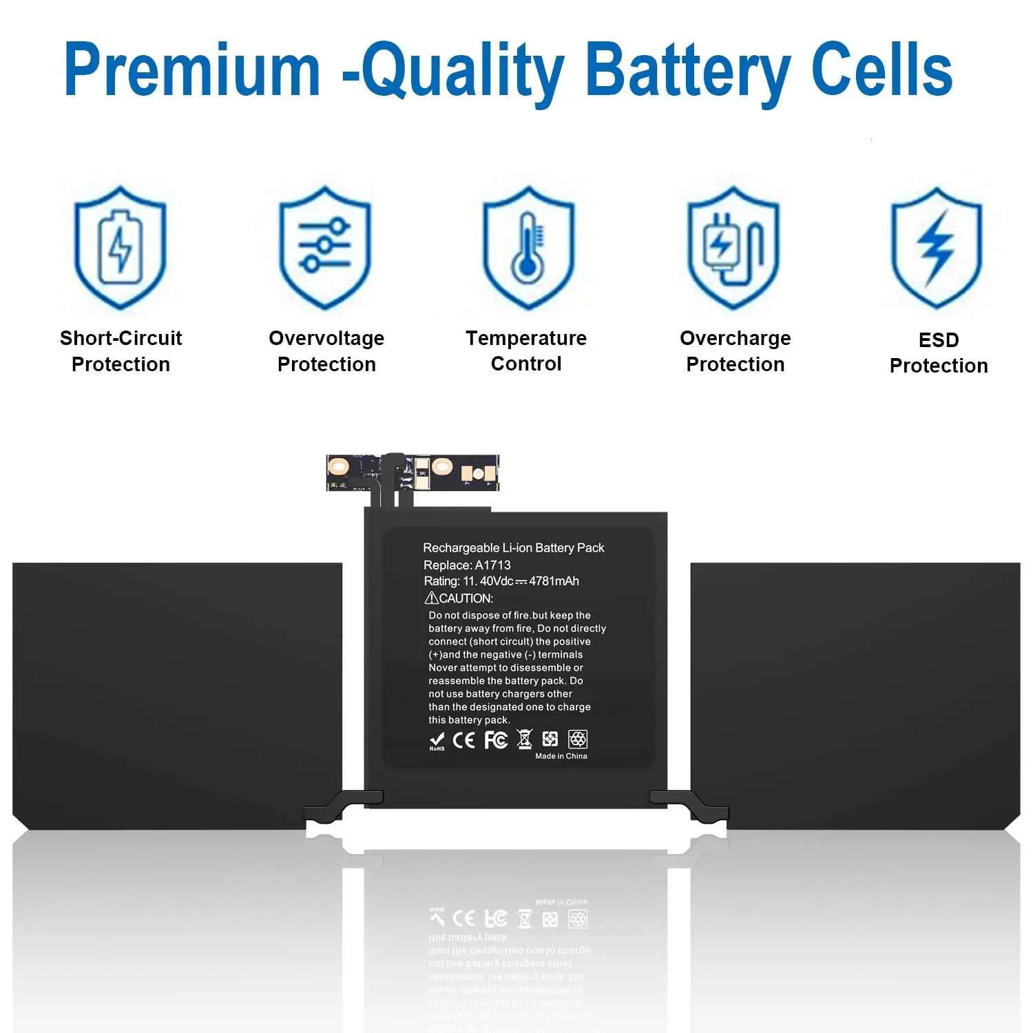BATERÍA para MacBook Pro de 13 pulgadas -- A1713 y A2171 (54.5Wh / 4781mAh 11,4 V batería de iones de litio de 6 celdas)