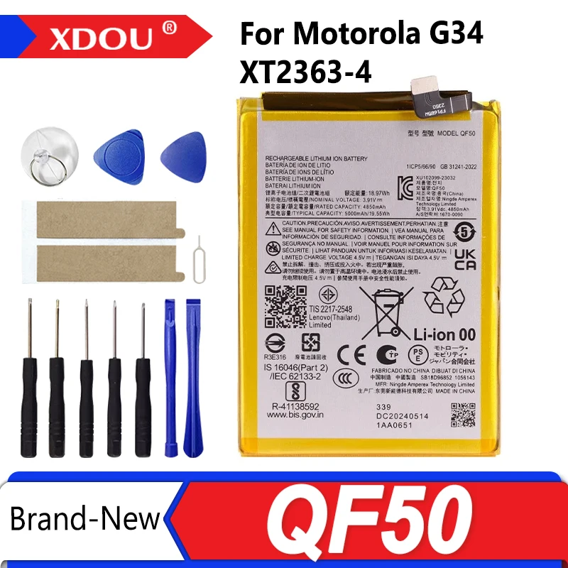 QF50 5000mAh Battery For Motorola moto G34 XT2363-4 phone Batteries+Tools