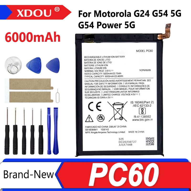 PC60 6000mAh Battery For Motorola MOTO G24 G54 5G /G54 Power 5G phone Batteries+Tools