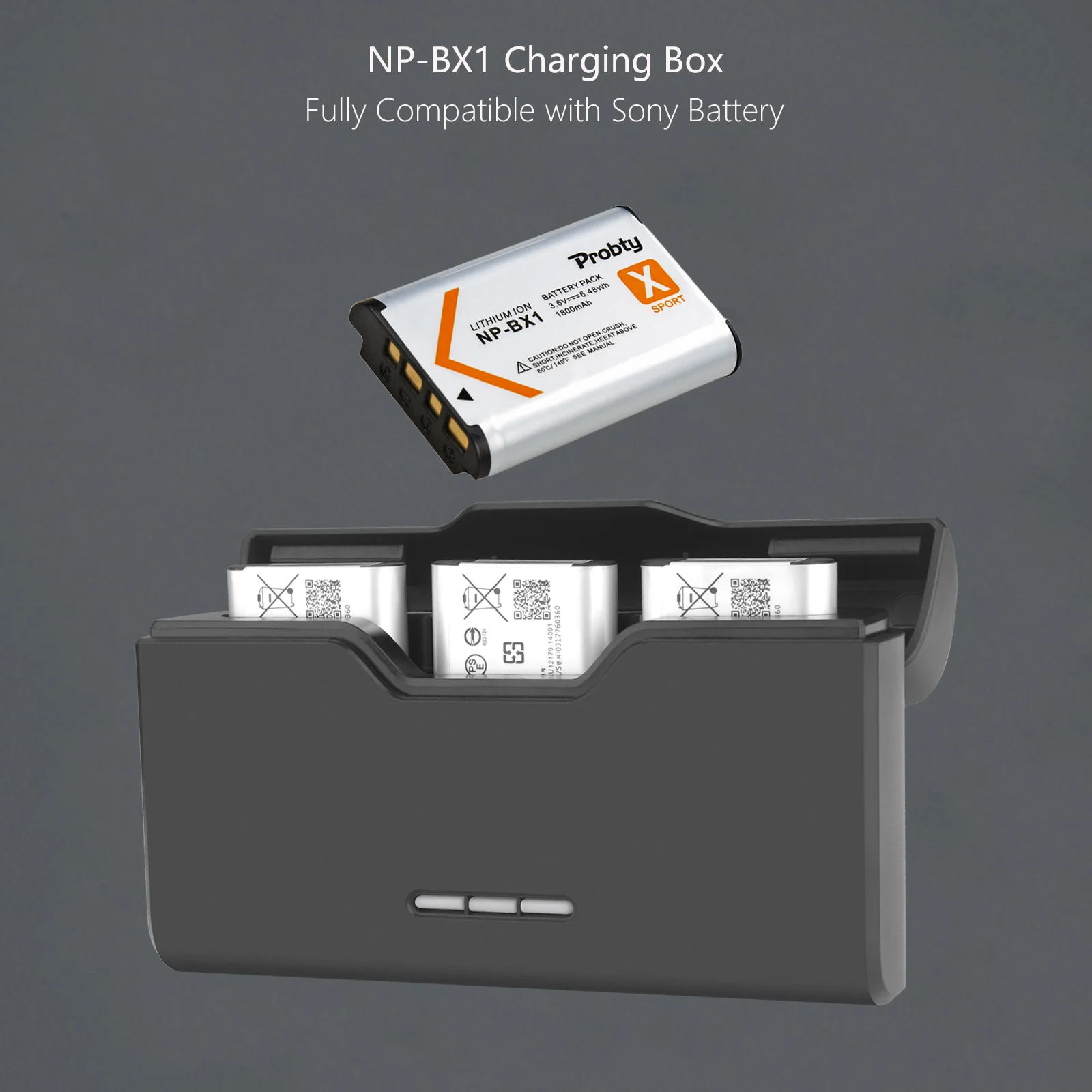Comprar Batería NPBX1 de NP-BX1 de 1800mAh con caja de carga, para Sony zv-1, DSC- RX100, M7, M6, AS300, HX400, HX60, WX350, AS300V, HDR-AS300R