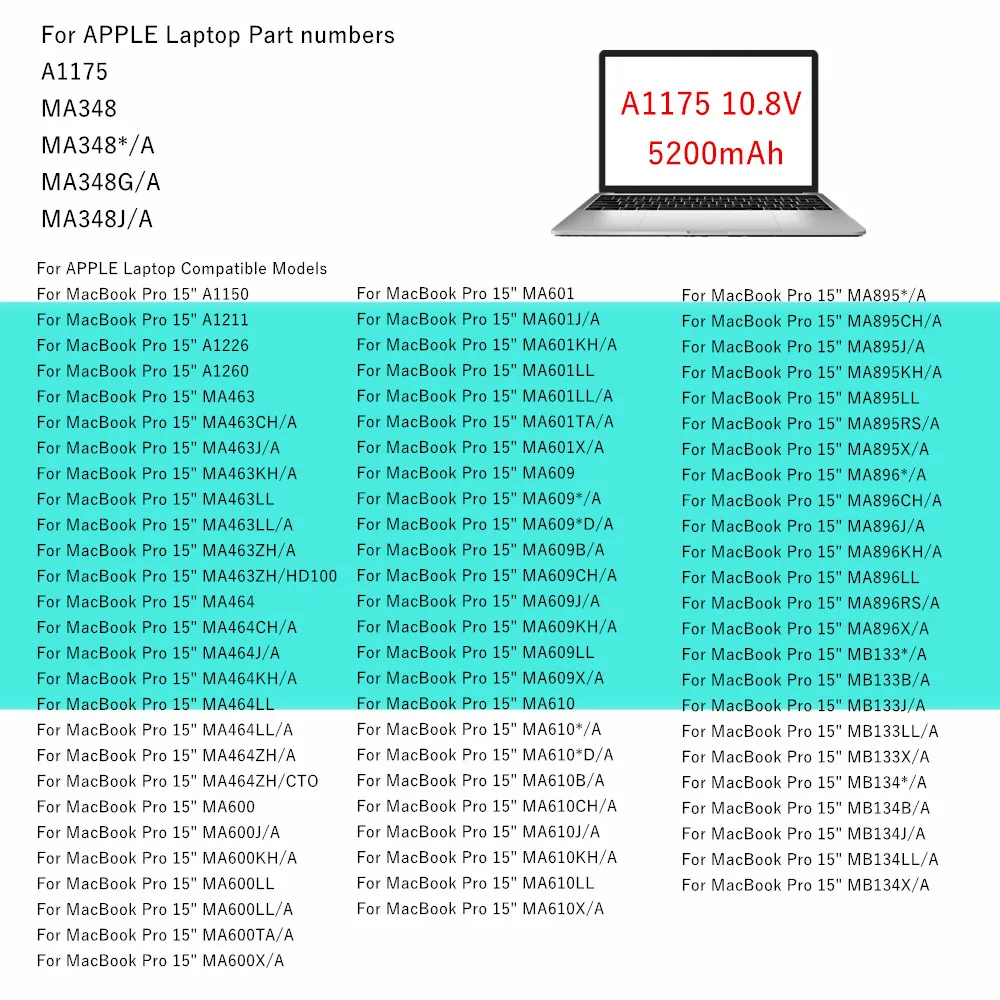 Comprar Batería de ordenador portátil de 5200mAh para Apple MacBook Pro 15 "A1150 A1211 A1226 A1260 MA463 MA464 MA600 MA601 MA609 MA610 A1175 MA348