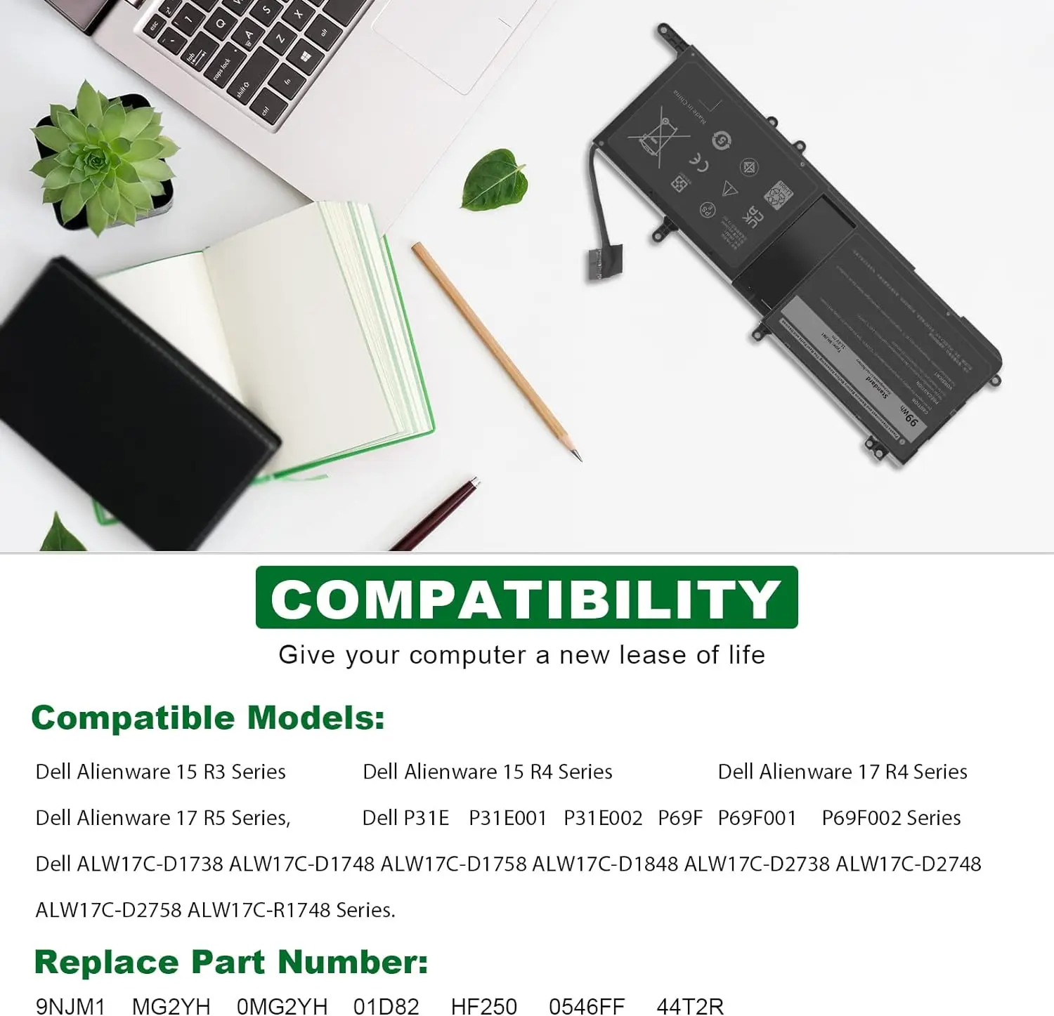 Comprar Batería de ordenador portátil 99Wh 9NJM1 para Dell Alienware 15 R3 R4 17 R4 R5 Series Notebook 0546FF 0HF250 44T2R HF250 MG2YH 0MG2YH 11,4 V