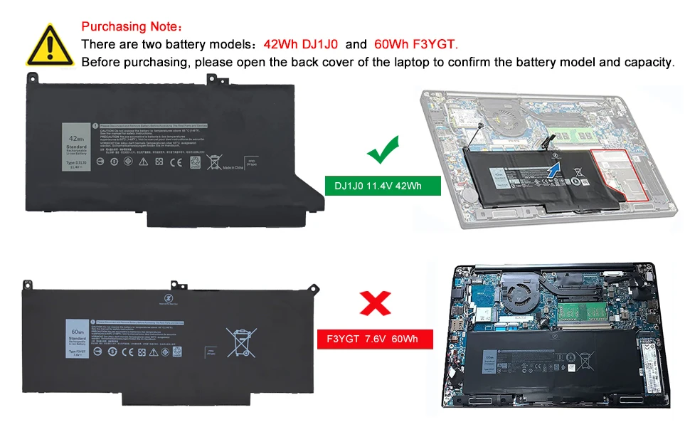 NOTA: Hay dos tipos de baterías para estos modelos de portátiles: 42Wh DJ1J0 o 60Wh F3YGT, comprueba tu modelo de batería original.