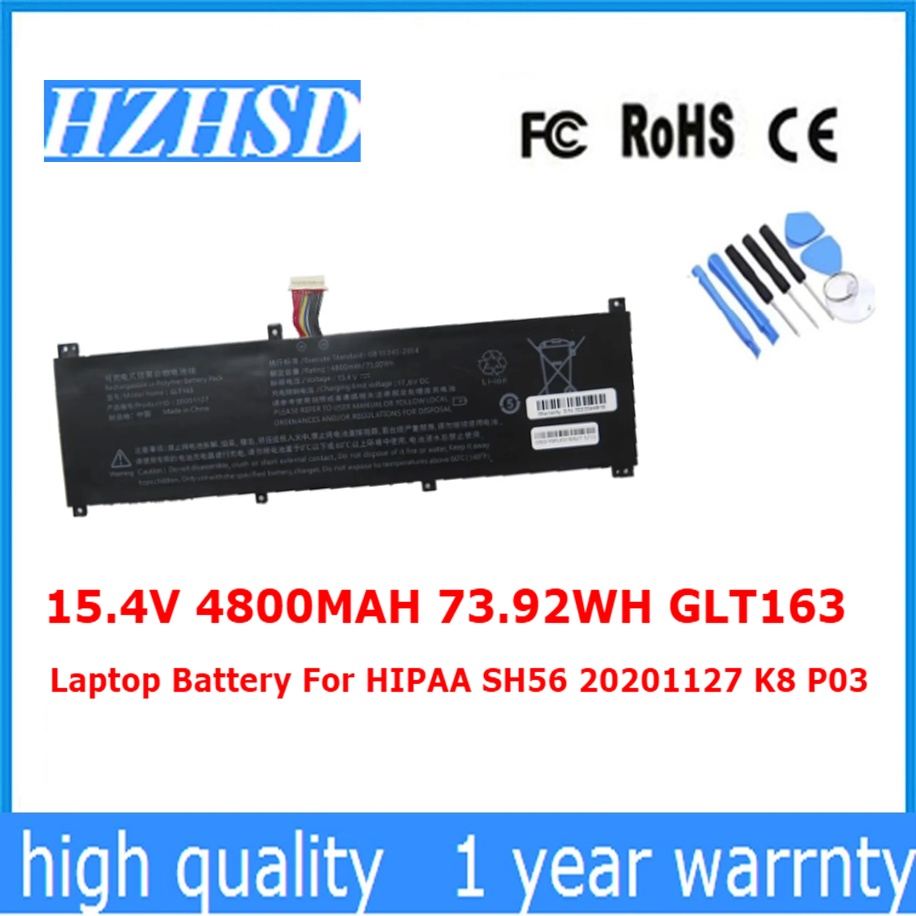 Comprar Batería para ordenador portátil HIPAA SH56 15,4 K8 P03, 4800 V, 20201127 MAH, 73.92WH, GLT163