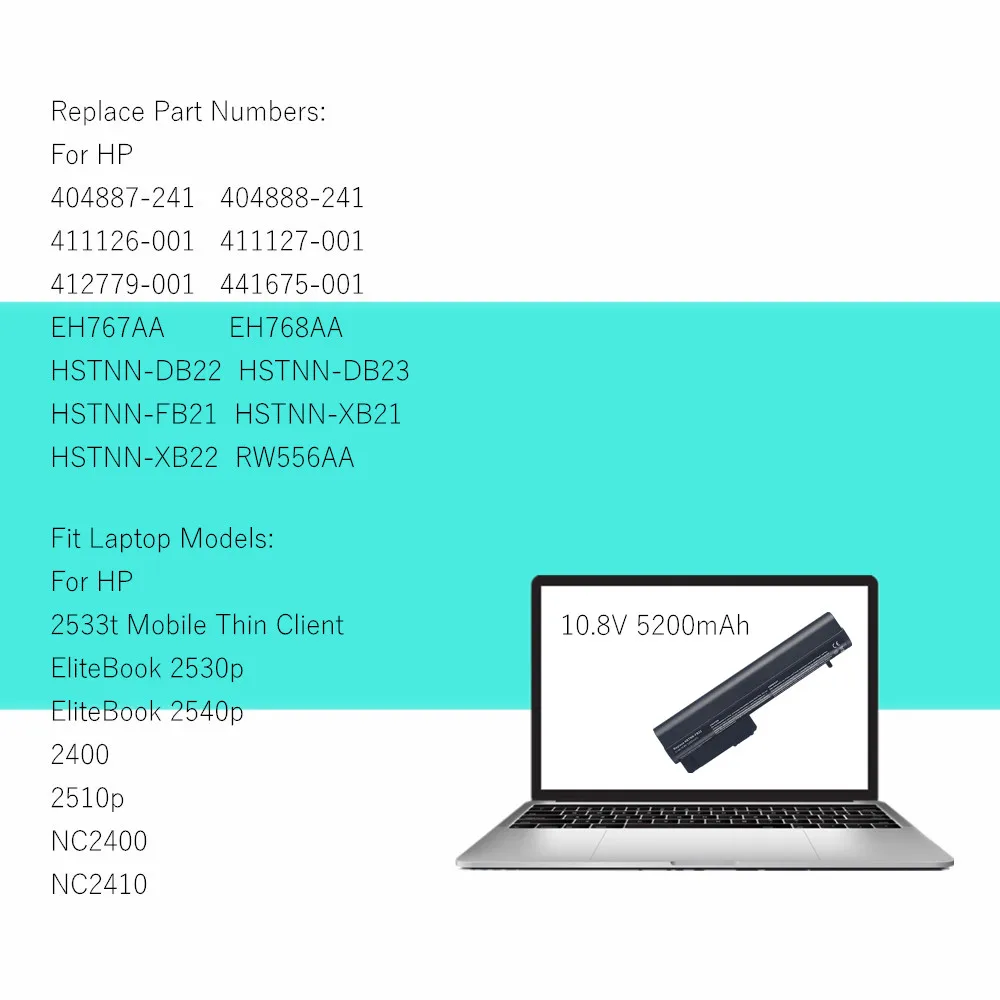 Comprar Batería de ordenador portátil para HP EliteBook, 2530p, 2540p, HSTNN-FB22, HSTNN-XB21, HSTNN-XB22, RW556AA, 404886-241, 404886-621, 404887-001