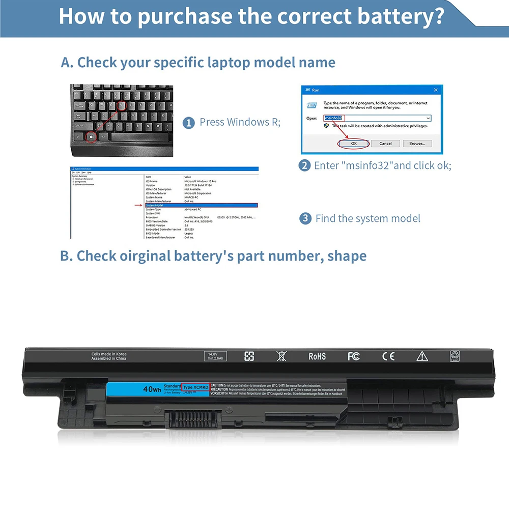 COMPATIBLE P/N: XCM7RD NT 4WY7C MTNM FW1MN 0V2969 24DRM 49VTP 4DMNG 6HY59 68DTP 6KP1N-6XH00 6K73M-8RT13 8TT5W 9K1VP DJ9W6 G35K4 G019Y NY N121Y XR312 MR90X1390 312 1387 DWHM MK4R7 T1M 312-1392 451-12107 451-12108.