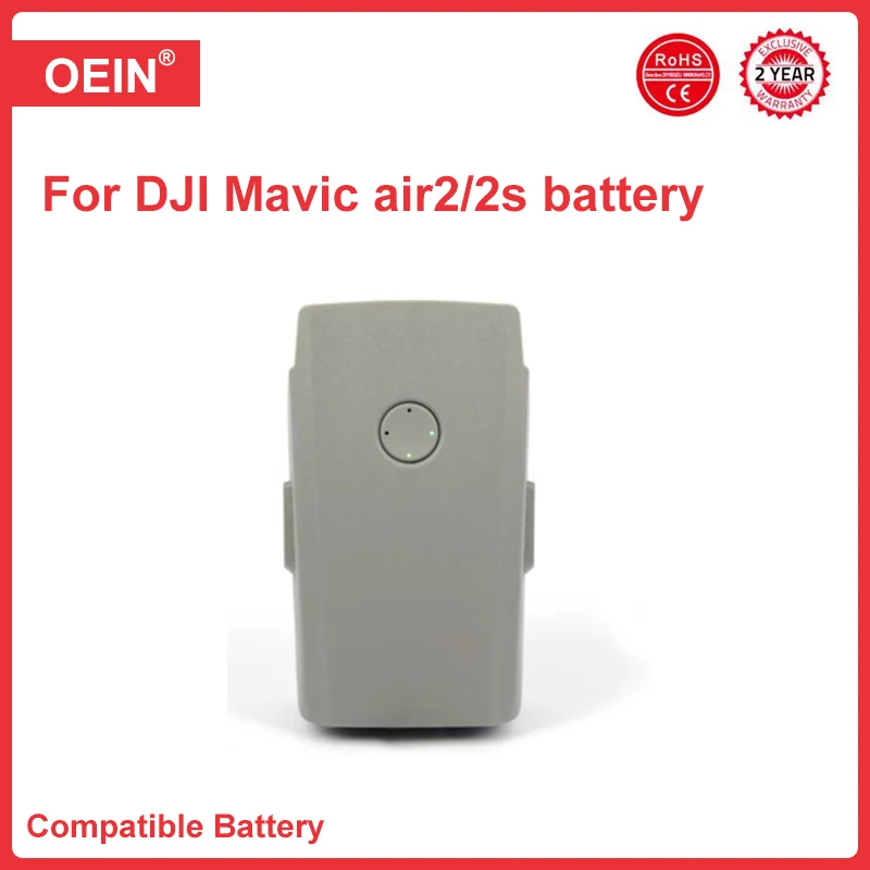 La batería de alto voltaje de 3 celdas especialmente creada para la serie Mavic Air 2 utiliza celdas de iones de litio de polímero de alta densidad de energía con una capacidad nominal de hasta 40,42 Wh, que dura 31 minutos con Air 2 S / 34 minutos con Mavic Air 2.