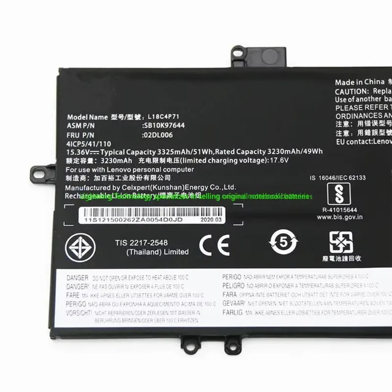 Comprar Batería Original para portátil L18C4P71 L18M4P72 L18L4P71 15,4 V 51Wh para Lenovo ThinkPad X1 Carbon 7. a generación 2019 2020
