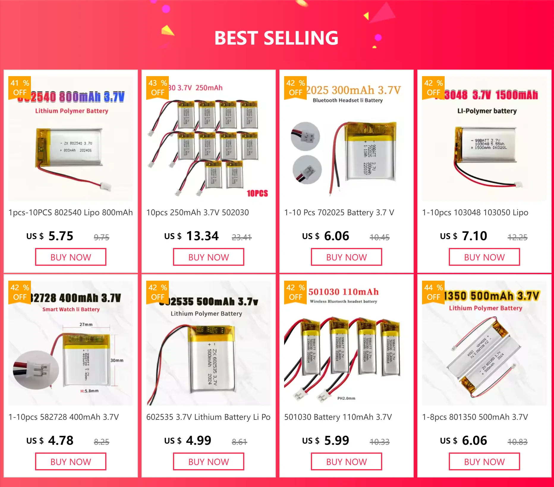 Aplicable: para relojes inteligentes, equipos de belleza, productos electrónicos, luces LED, dispensadores de agua, barredoras de pisos, masajeadores.