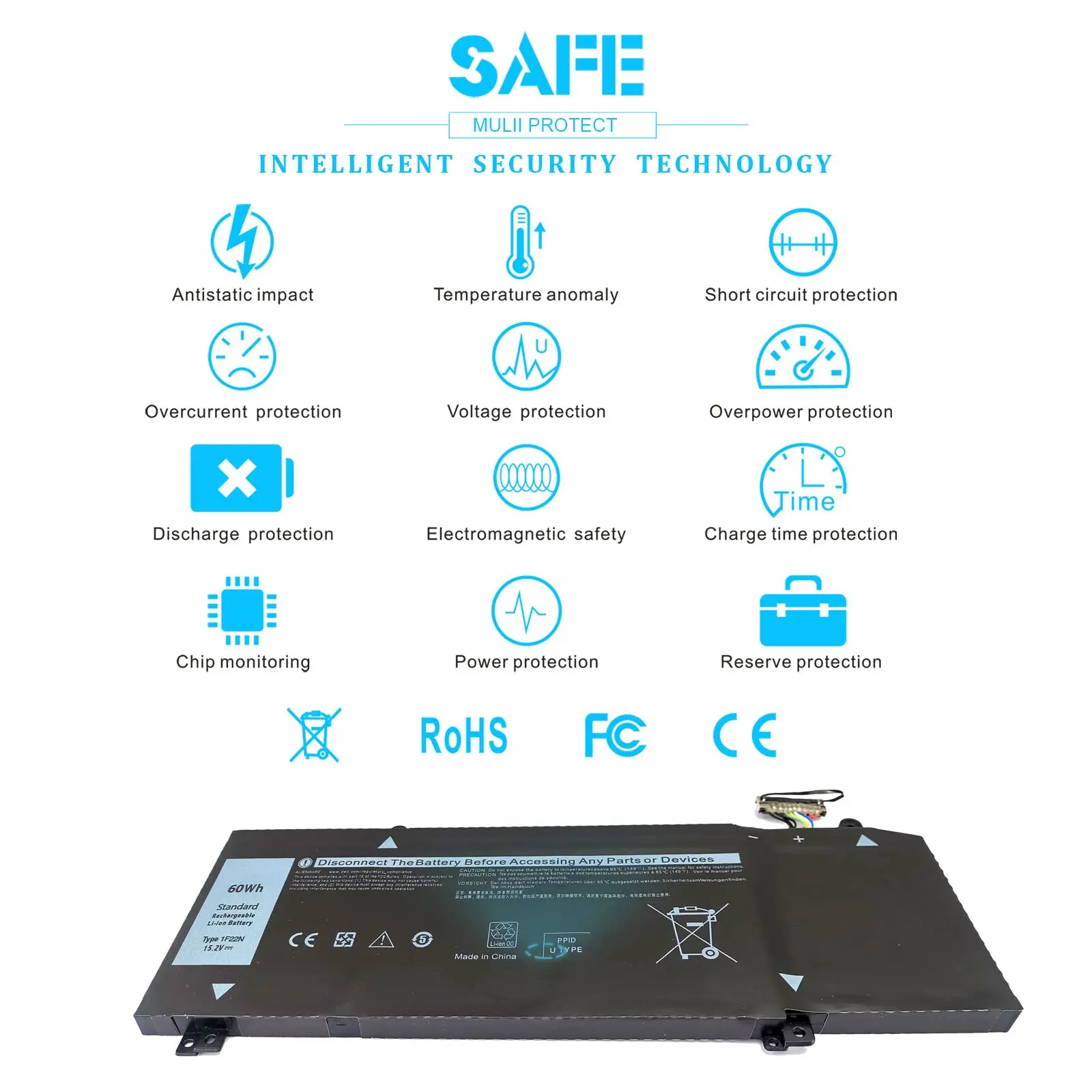 Comprar Batería para portátil Dell Alienware, 1F22N, M15, P79F, M17, R1, P37E, P37E001, G7, 7590, 7790, G5, 5590, D2783W, D2743B, D2843W, HYWXJ, JJPFK, 60Wh
