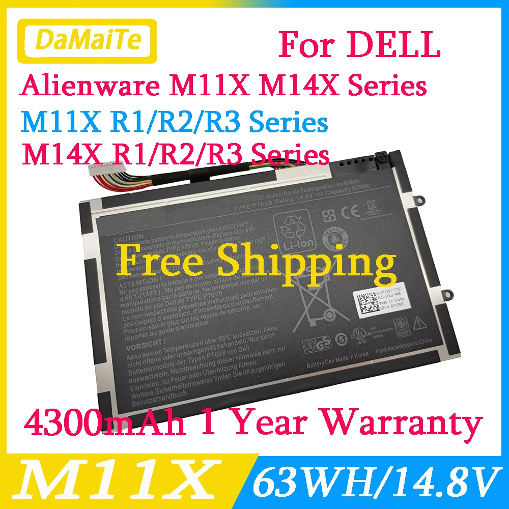 Comprar Batería PT6V8 para portátil DELL Alienware M11X, R1, R2, R3, M14, R1, R2, R3, X8P6X6, 08P6X6, T7YJR, P06T, P18G, 8P6X6, P18G001, P06T002, nueva