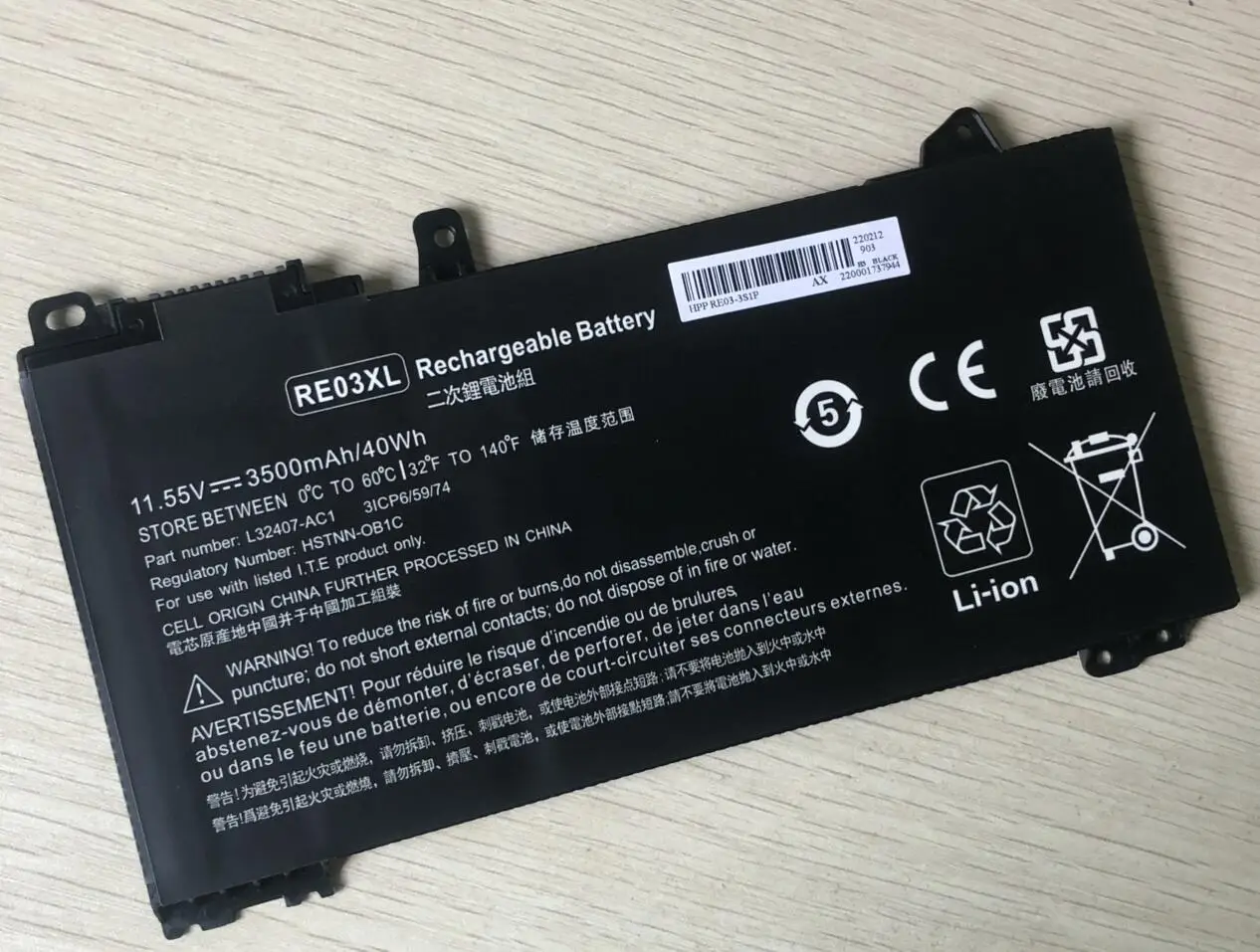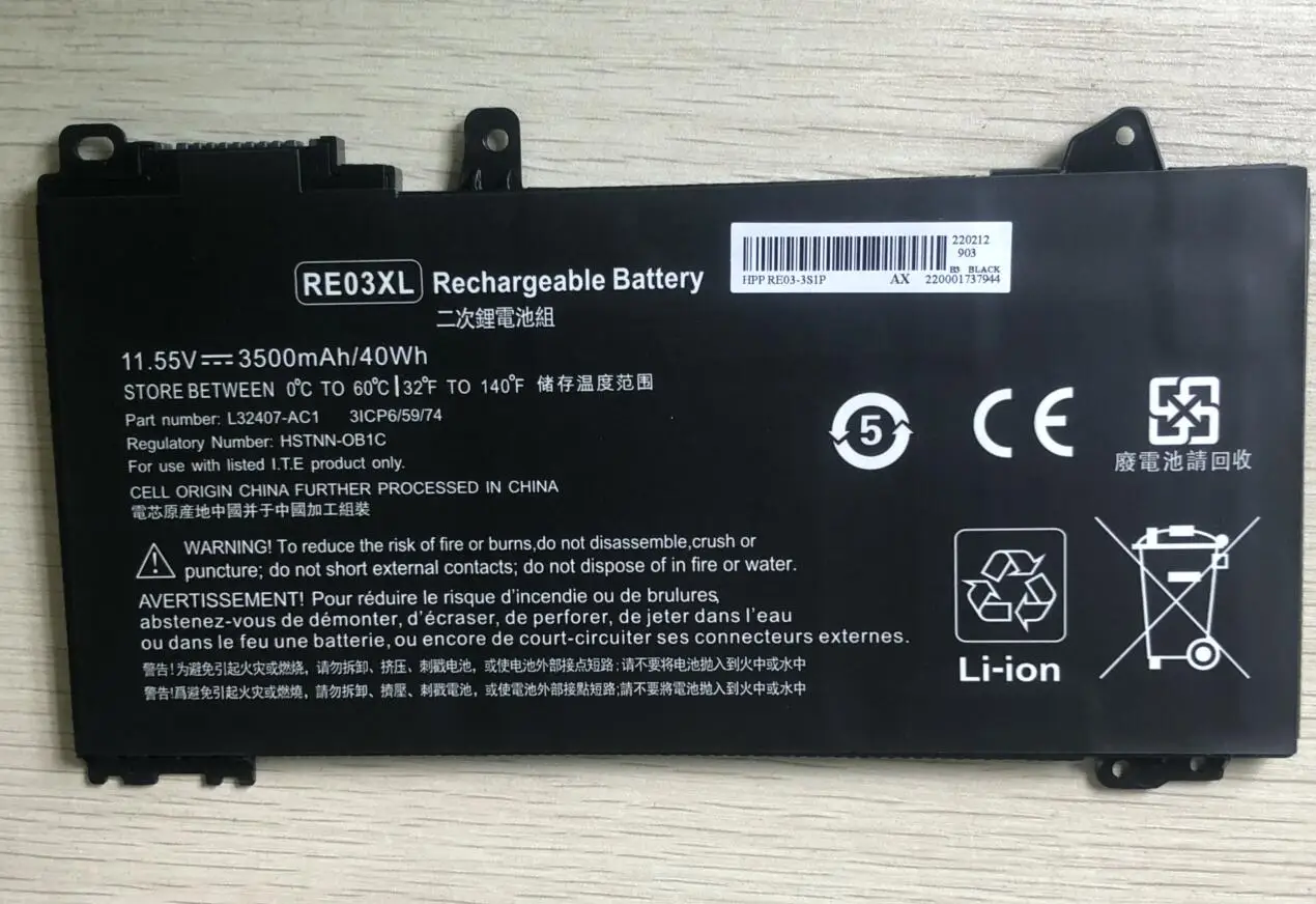 Batería de ordenador portátil RE03XL para HP ProBook 430 440 445 450 455 G6 Series L3240 de 2, 2 y 3 unidades