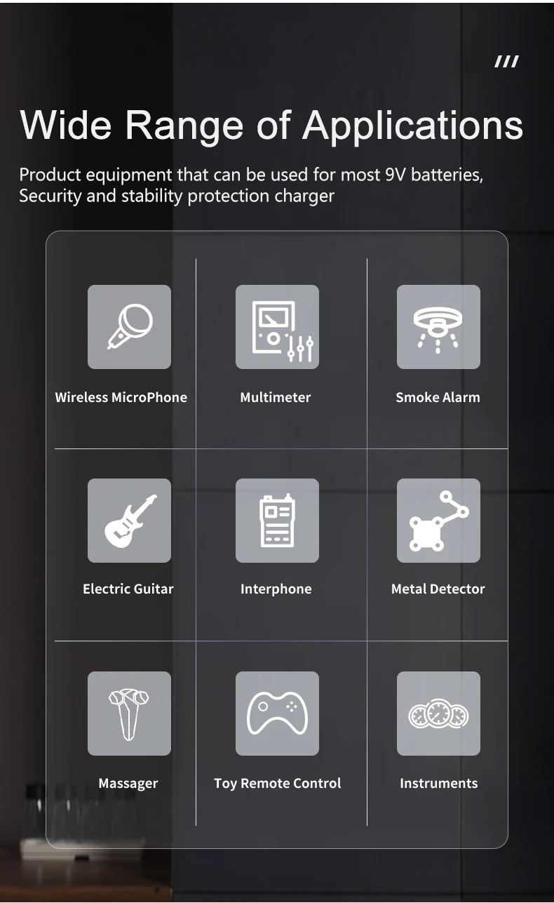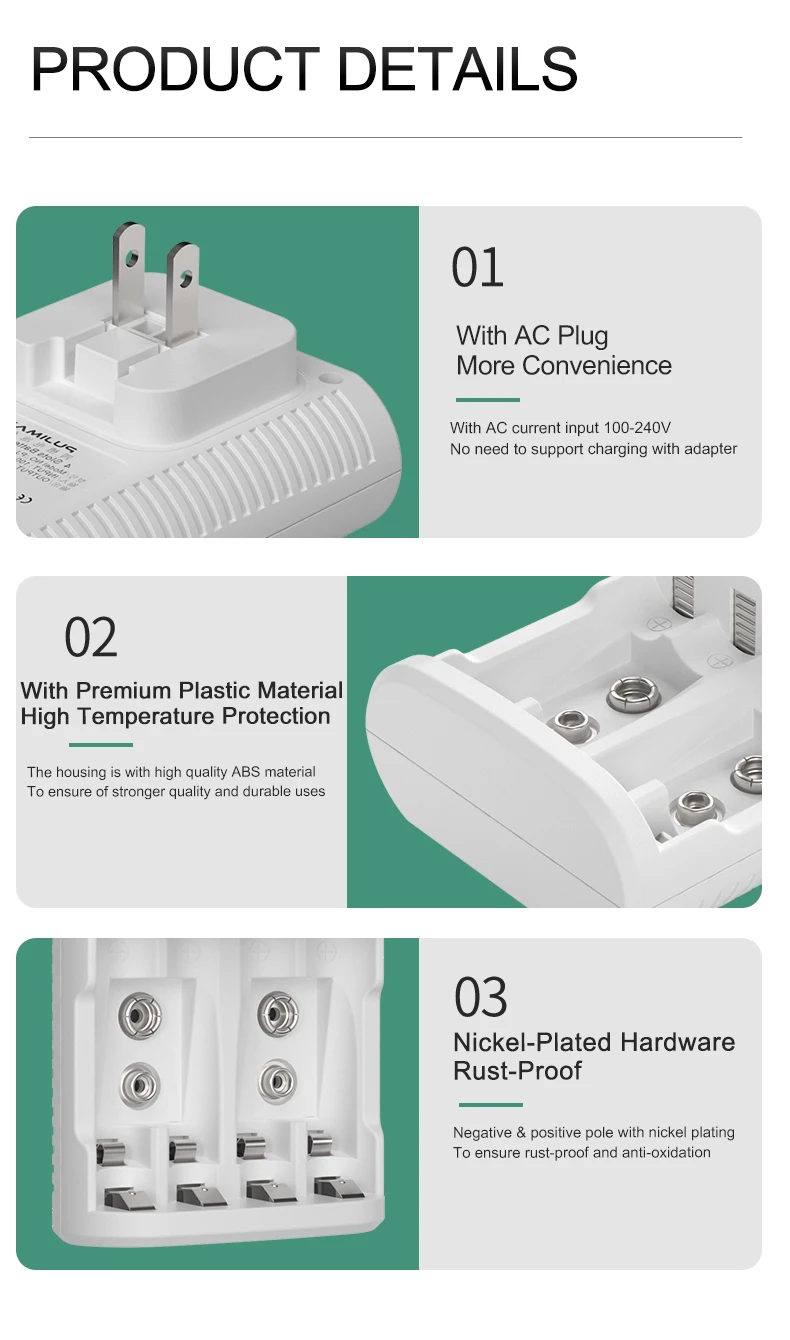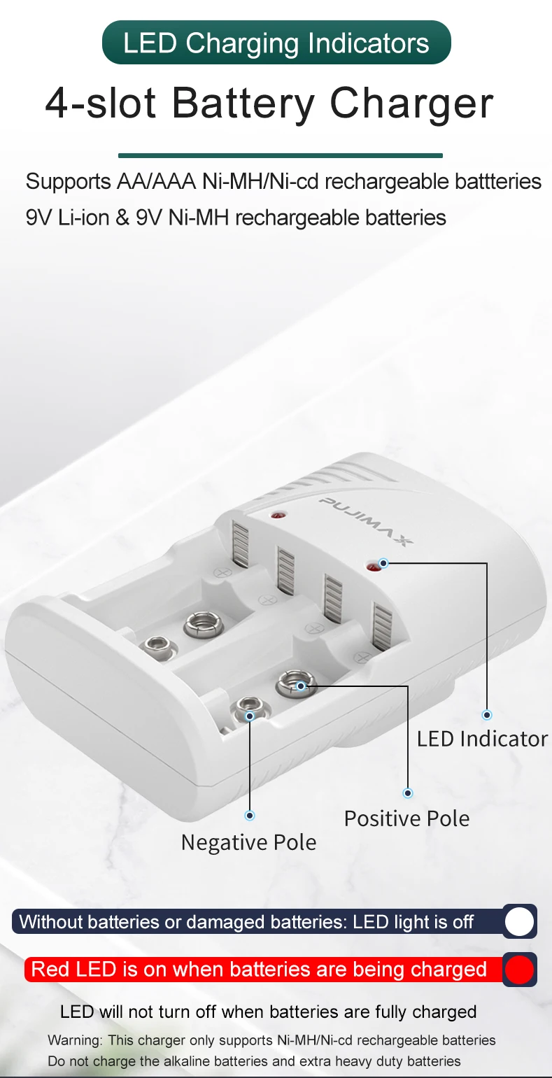 --4.Este cargador sólo se puede utilizar para1,2 V Ni-MH o 9 VBaterías recargables, no para ningún otro tipo de batería.