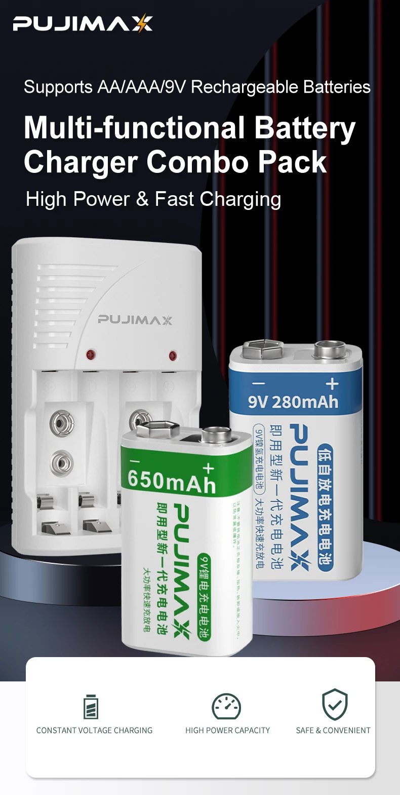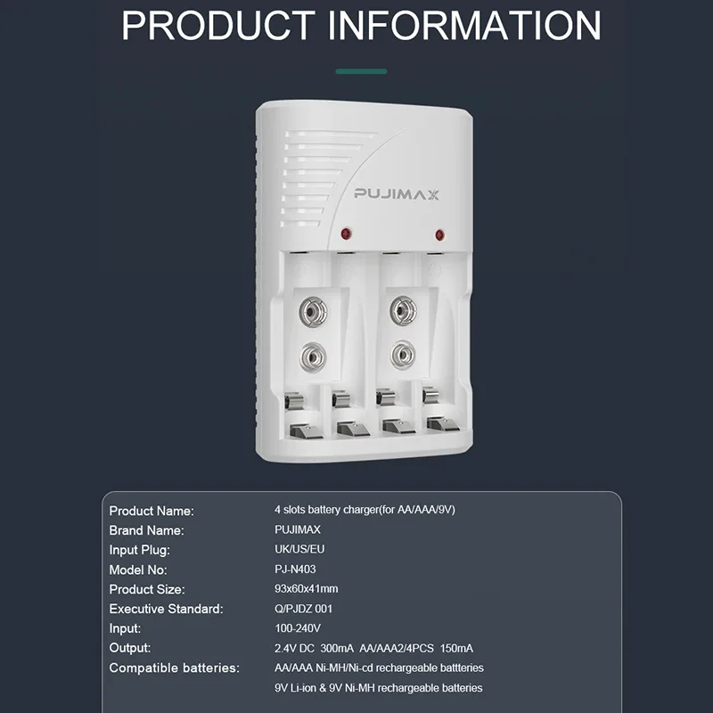 Comprar Para batería recargable de 9V, batería recargable AA/AAA de 1,2 V, cargador de batería de 1,2 V y 9V, enchufe para Reino Unido, EE. UU., UE con luz LED