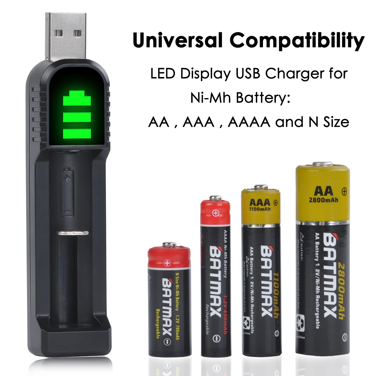 1. Este cargador USB LED puede cargar baterías recargables tamaño AA/AAA/AAAA/N.