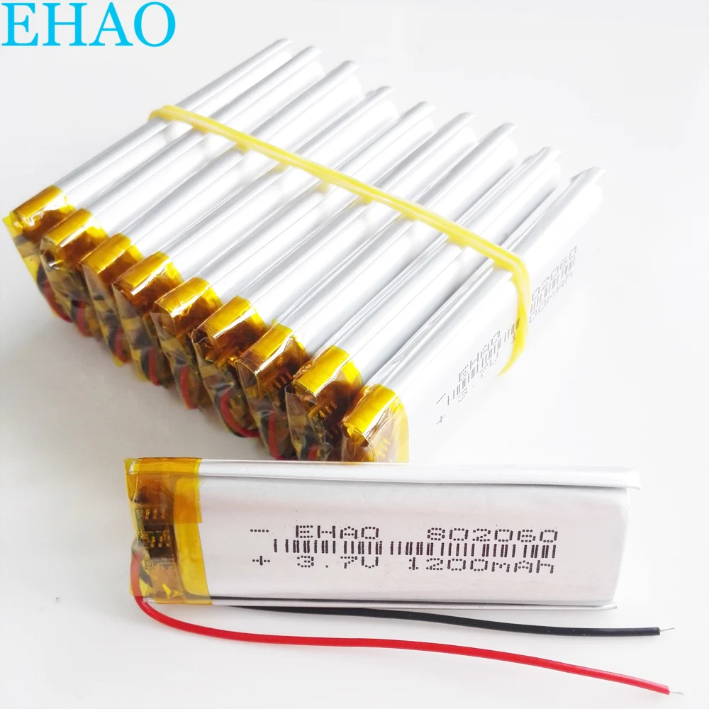 Comprar Batería recargable li-po de polímero de litio, 3,7 V, 1100mAh, 802060 para MP3, GPS, DVD, almohadilla para videojuegos, libros electrónicos, tableta, PC, portátil, 10 Uds.