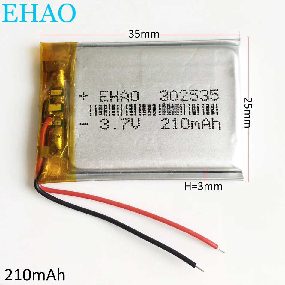 Comprar Batería recargable LiPo de polímero de litio de 3,7 V 210 mAh 302535 Para Mp3 Bluetooth altavoz grabadora pequeño punto lectura pluma GPS